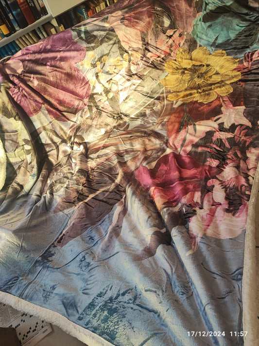 Plaid Vellutato Pile Agnellato Digitale Fiori Margaret Pezzoli Doppio Strato
