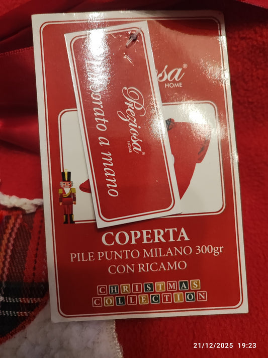 Plaid rosso della Preziosa lavorato e ricamato a mano 139x160 produzione italiana.