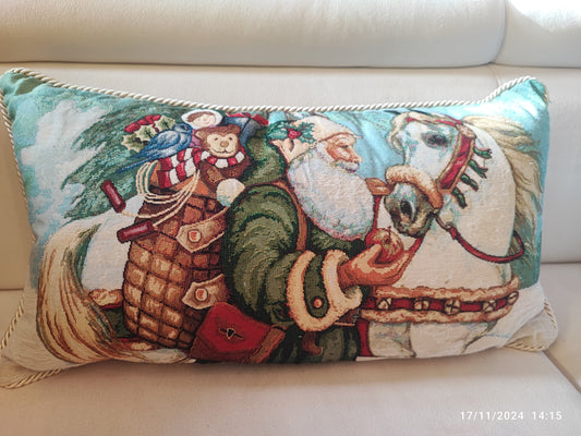Cuscino Cavallo di Natale Verde con cordone 35x72 produzione italiana
