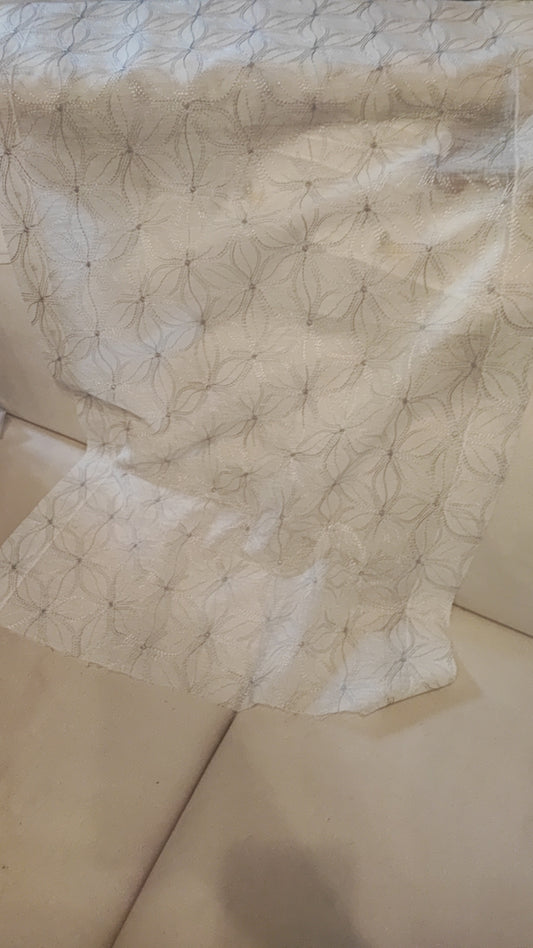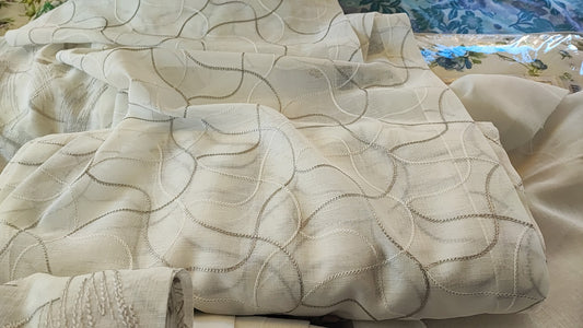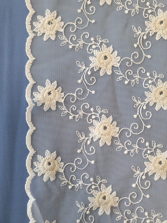 Tendina di tulle ricamata in rilievo larga 60 cm confezionata produzione e disegnata in Italia se