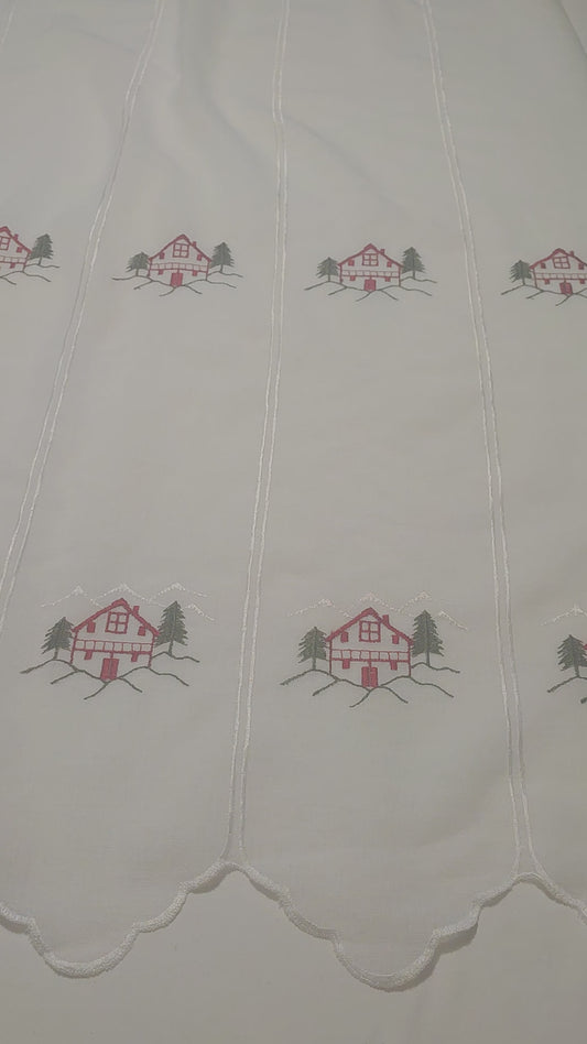 Tendina tirolese h 150 casetta rossa ricamata in rilievo produzione italiana