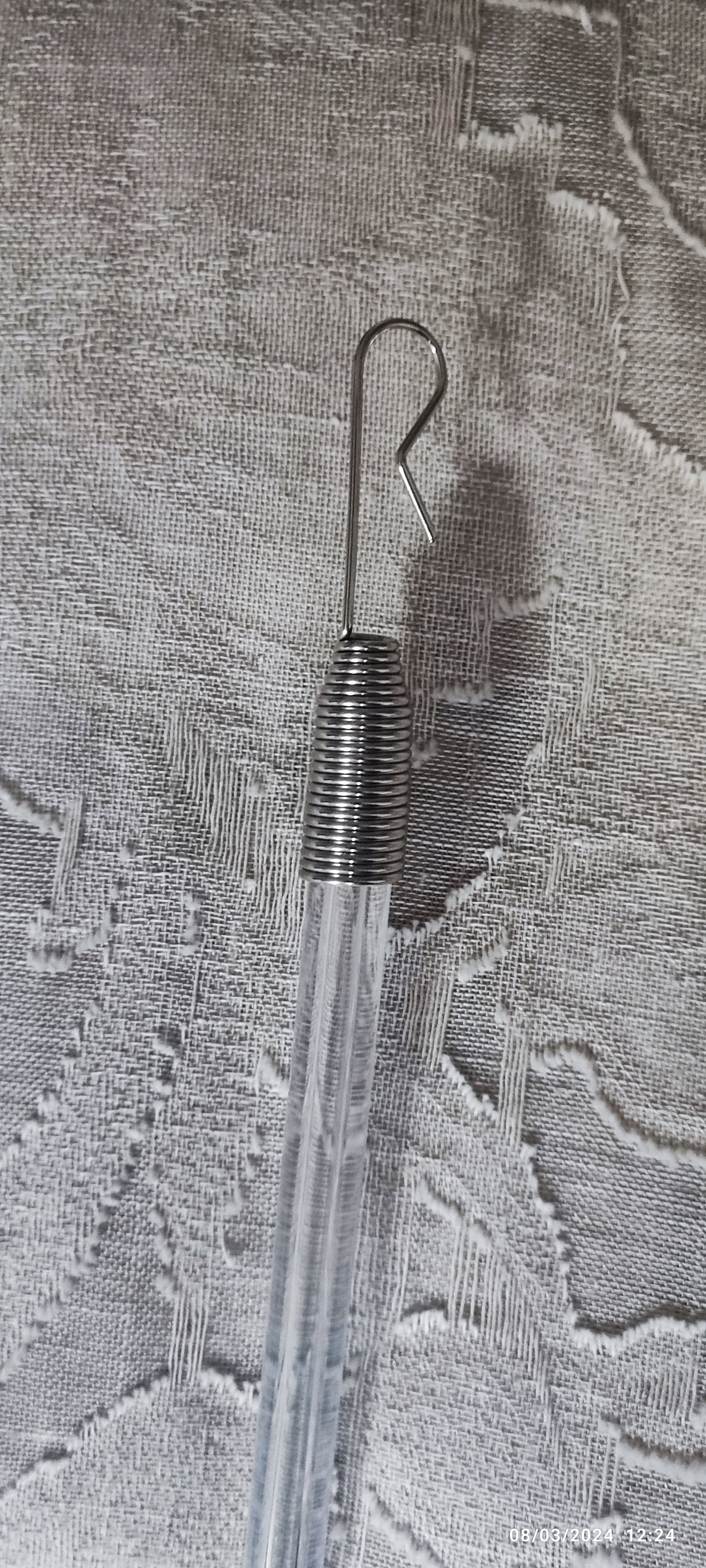 Accessorio per tenda Tiratenda/frusta con impugnatura e gancio in metallo in plexigas resistente prodotta in Italia .