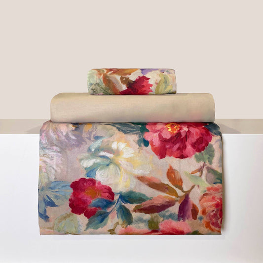 Parure Copripiumino CREOLE Camelia Matrimoniale produzione artigianale Toscana