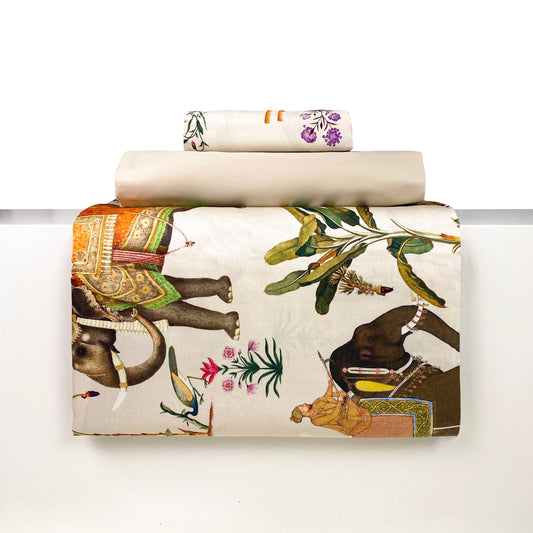 Completo Lenzuola Copriletto CREOLE Circo Panna e Nero Matrimoniale 100% raso di cotone