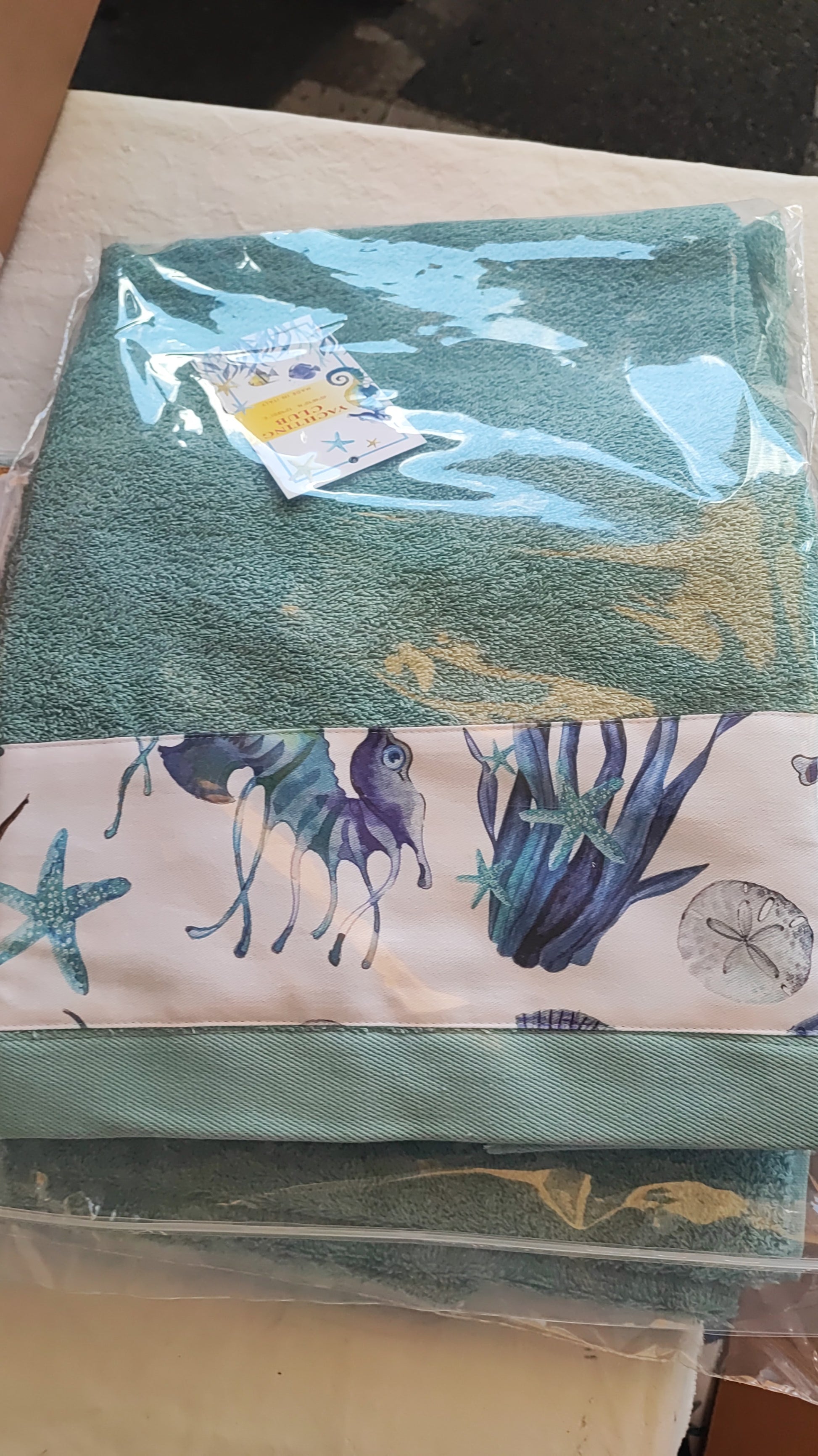Coppia di Asciugamani da bagno mani più ospite di Annamaria con striscia disegno mare