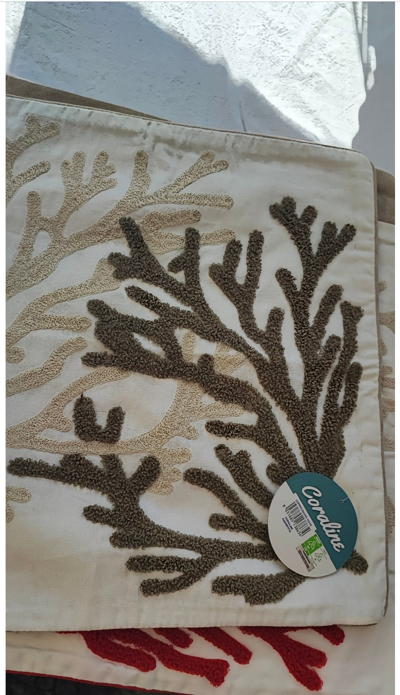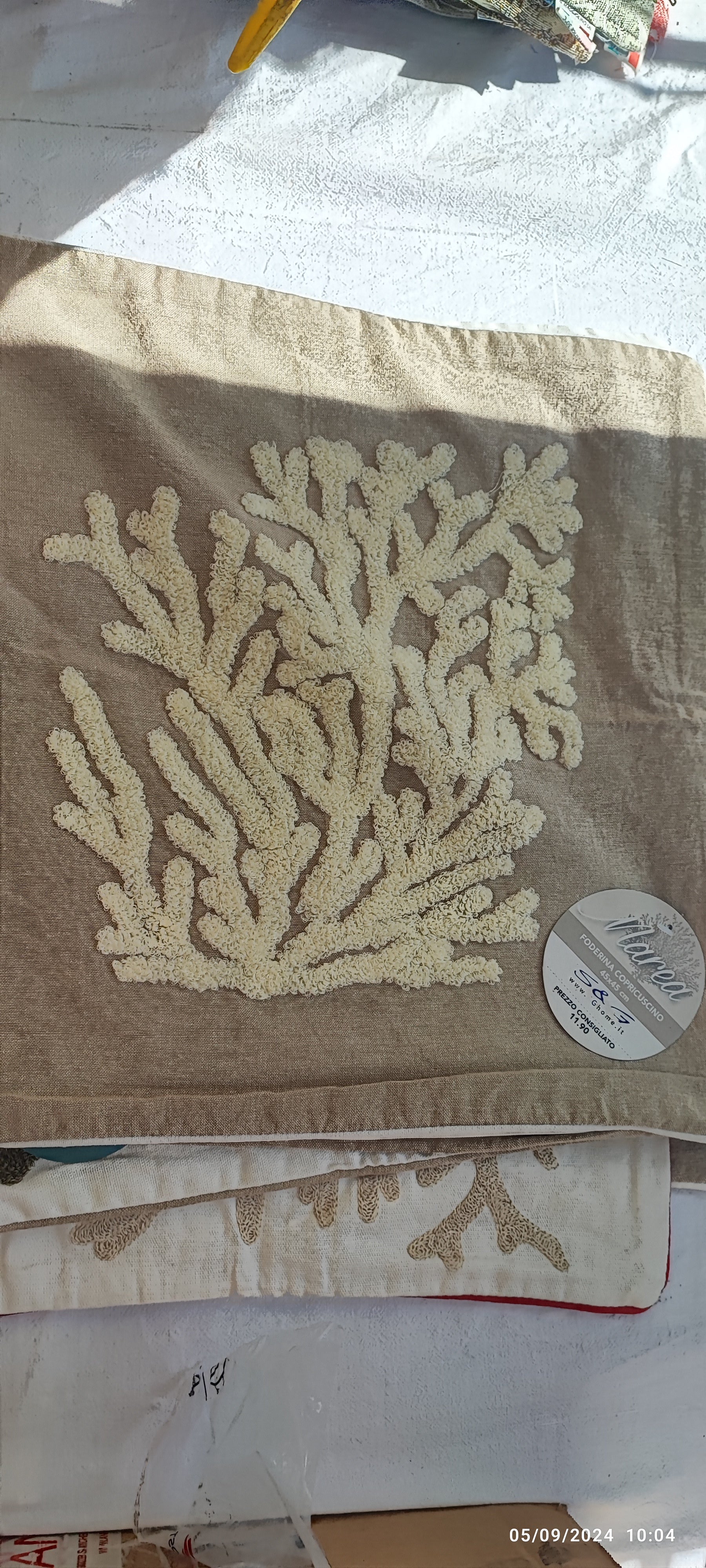 COPRICUSCINO CON RICAMO PUNTO SPUGNA E PIPING - 100% COTONE