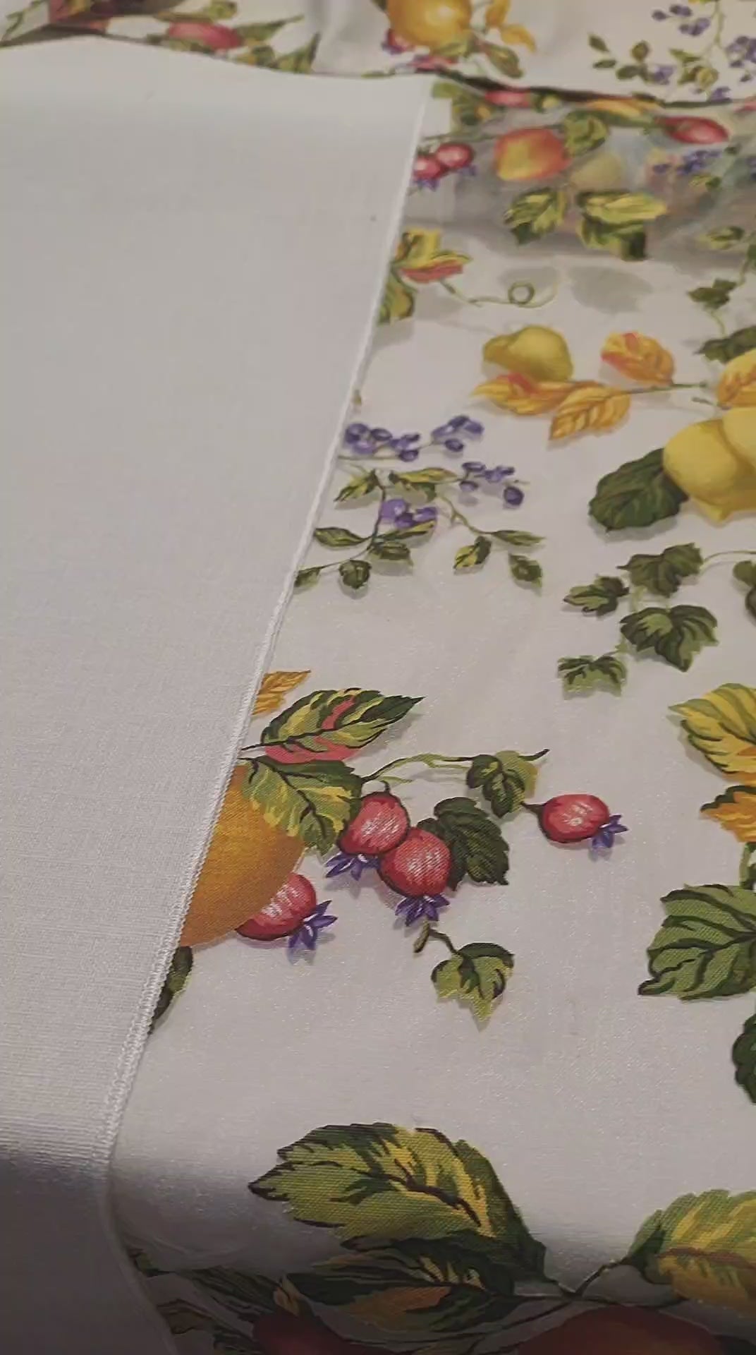 Panama cotton fabric valance with fruit design h 45, is complete with valance ribbon which is curled and you will be provided with the ribbon to put on the chest of drawers