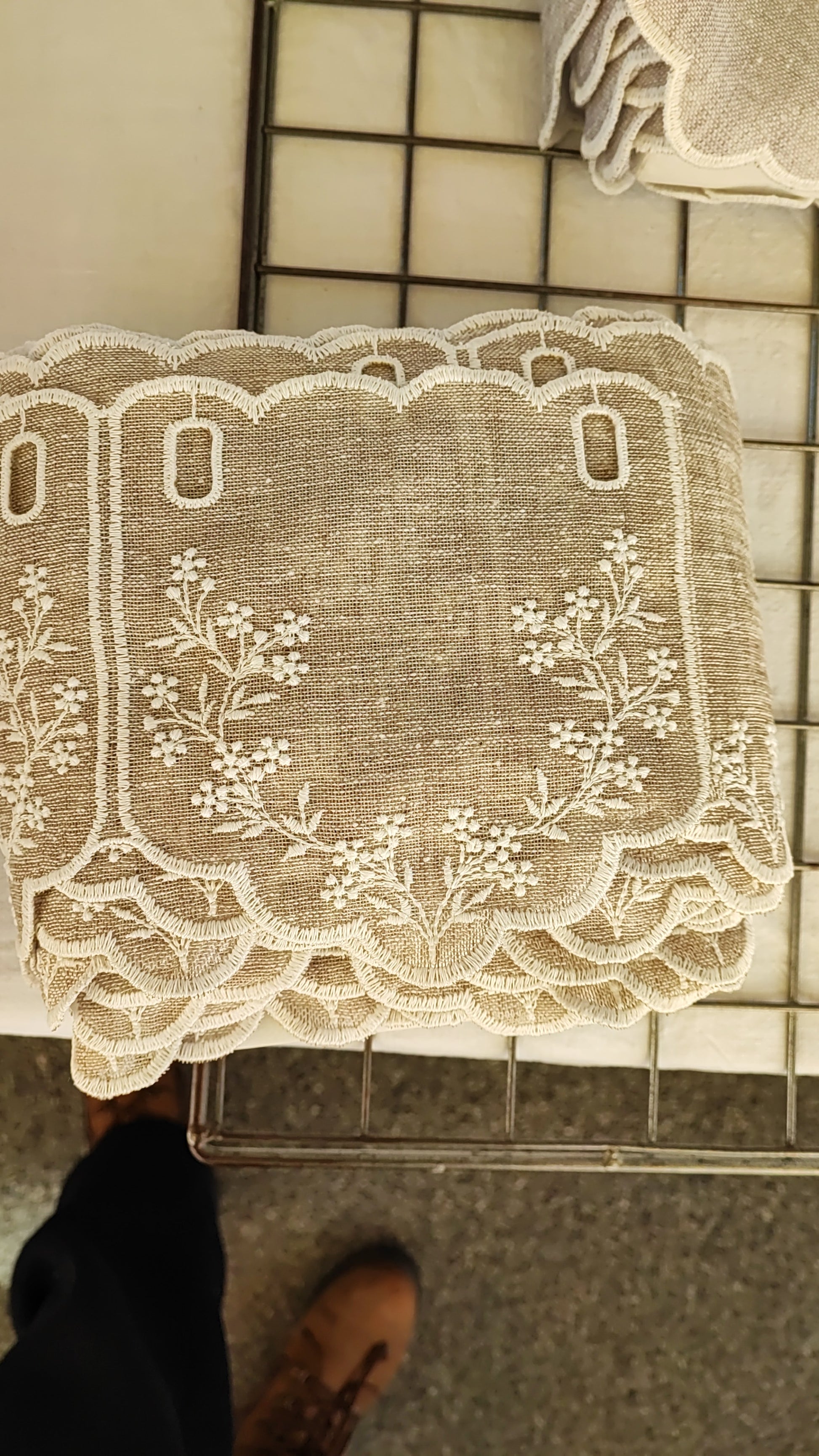 Myrtle mantovanina h 20 cm, dove gray color and embroidered with little white flowers, mixed fabric, designed and produced in Italy.