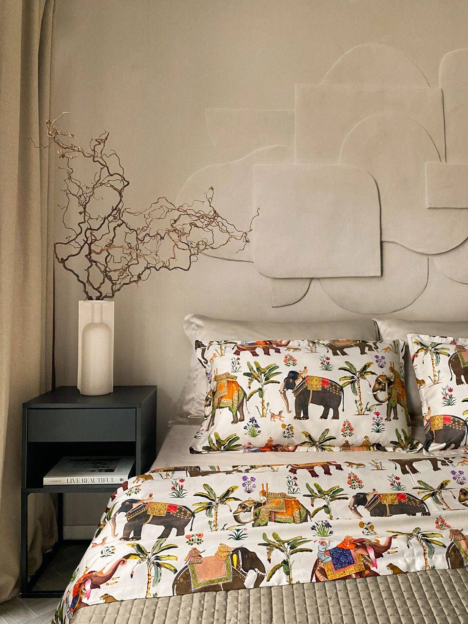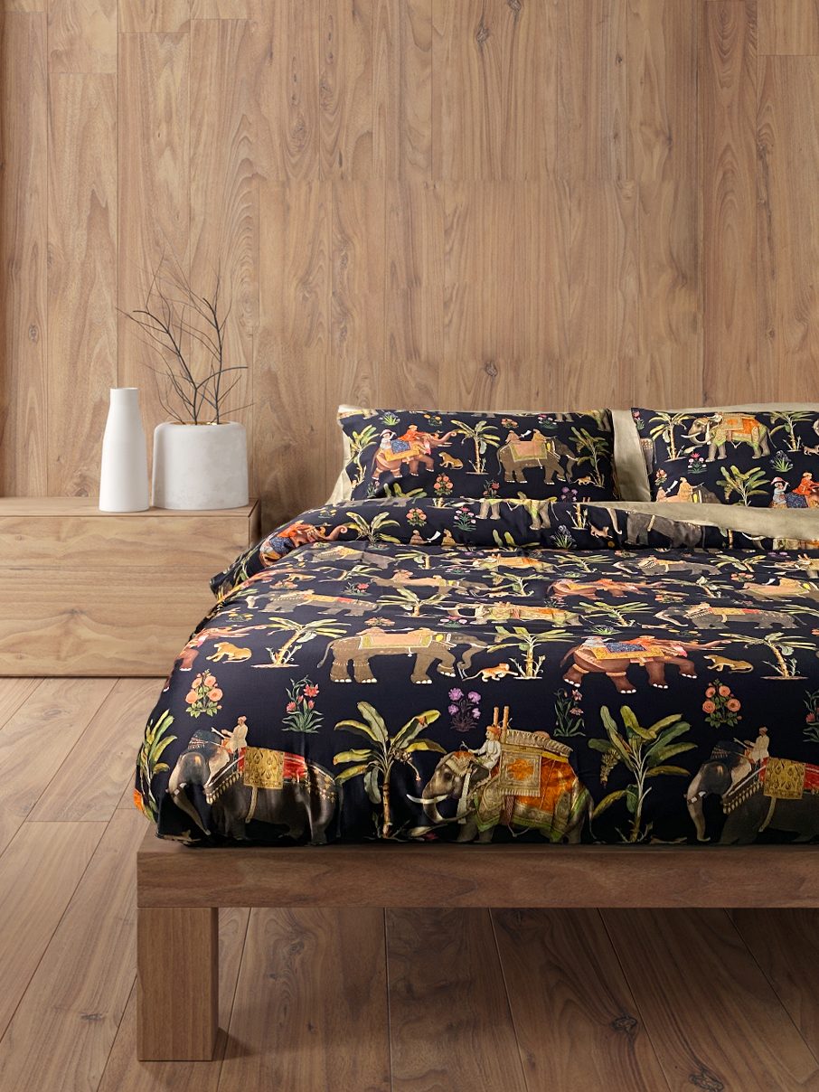 Completo Lenzuola Copriletto CREOLE Circo Panna e Nero Matrimoniale 100% raso di cotone