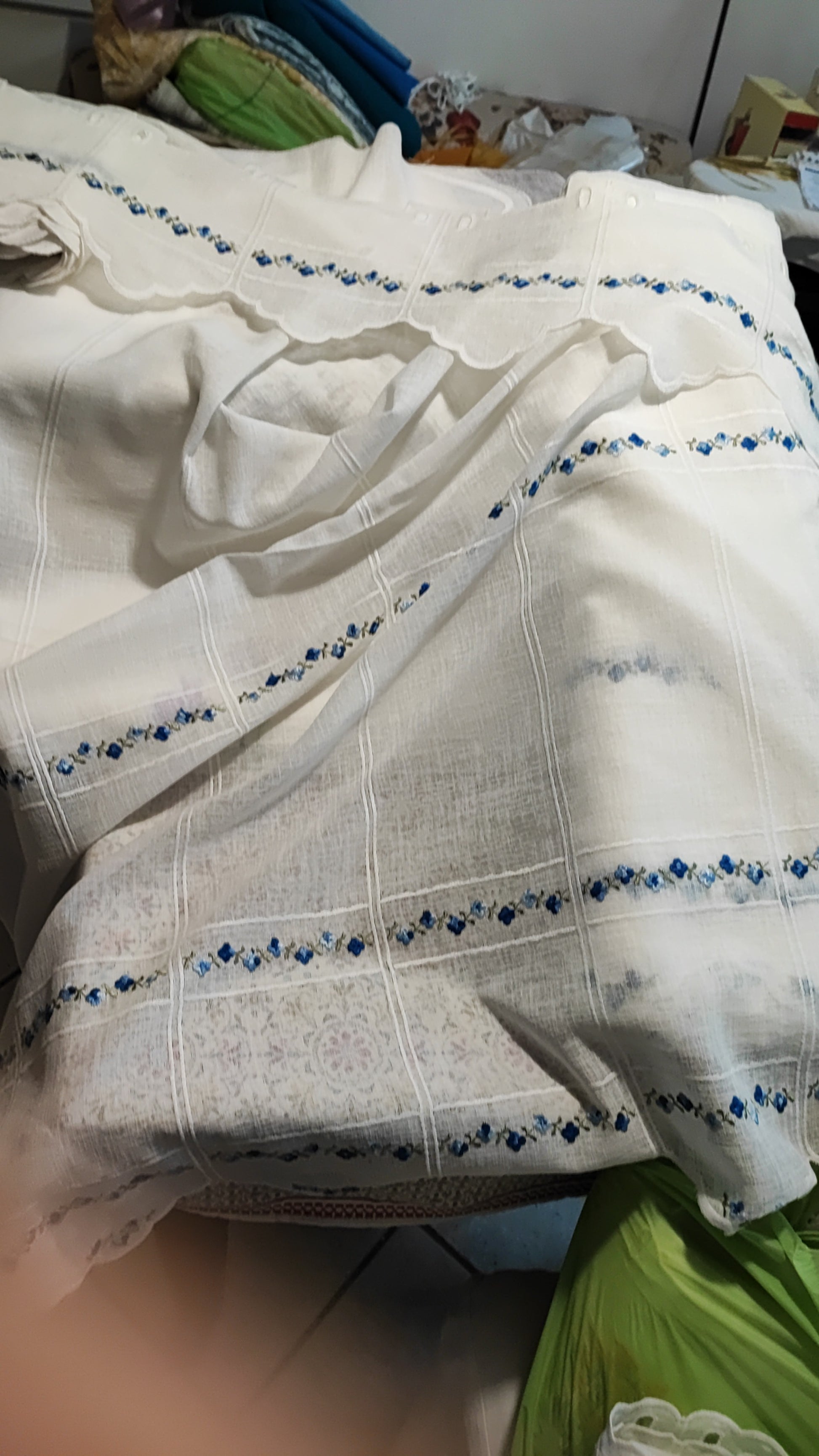 Tyrolean vertical cut glass curtain 1.50 m high, produced, designed and embroidered in Italy.