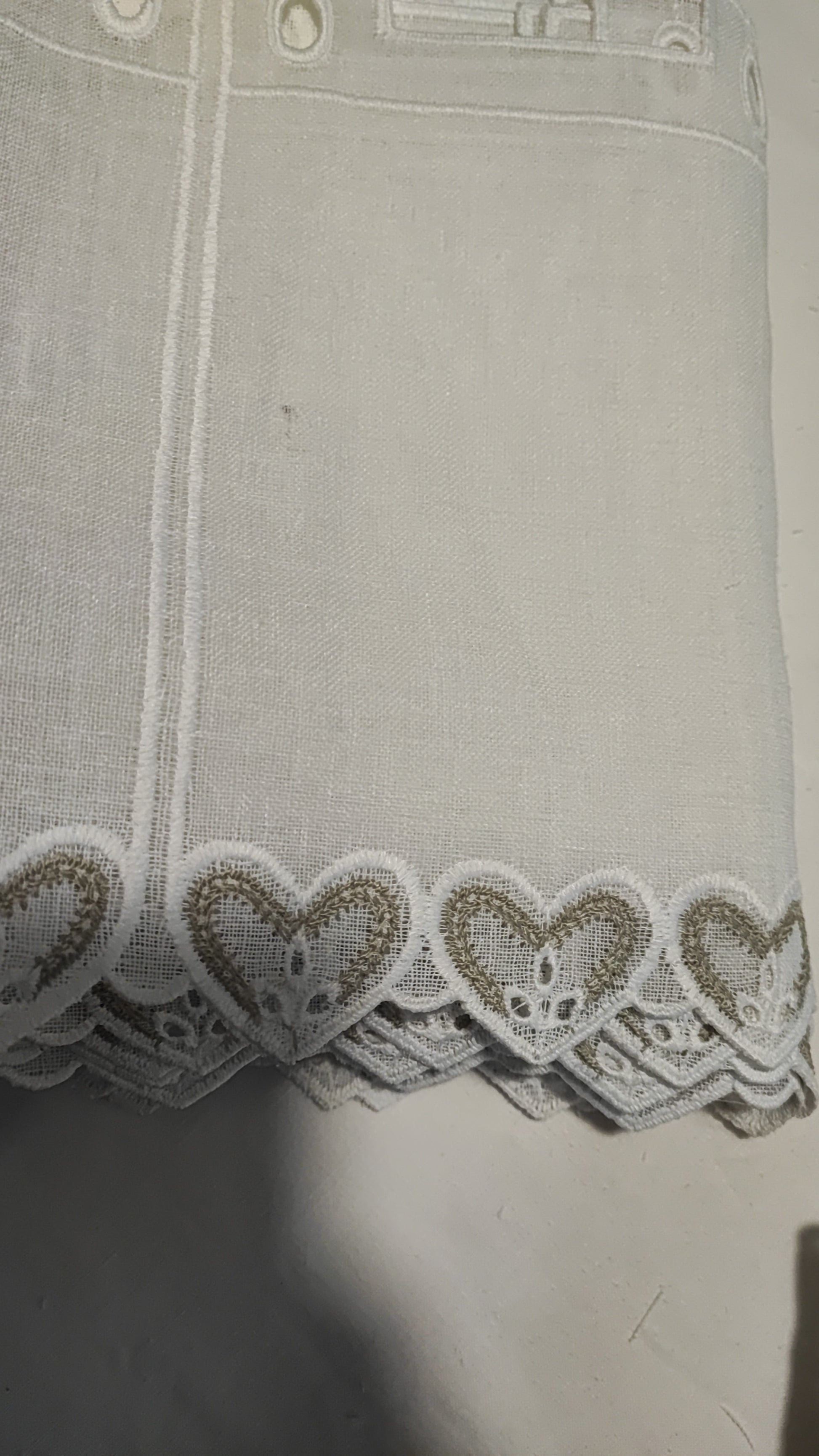 Mantovanina h 24 con cuore grande con sangallo ricamato bianco su bianco e mantovanina h 24 con cuori piccoli. Disegnate, ricamate e progettate in Italia m