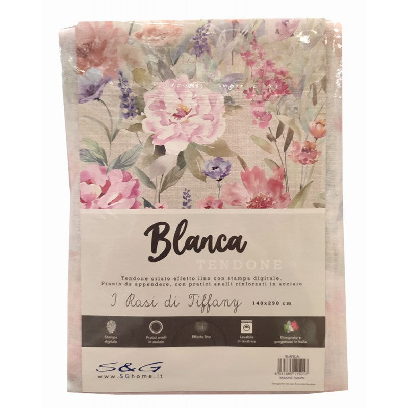 Panel cortina 140x290cm Blanca de SGhome. Tejido semiopaco 100% poliéster efecto lino con anillas metálicas, pack de 1 pieza, impresión digital.