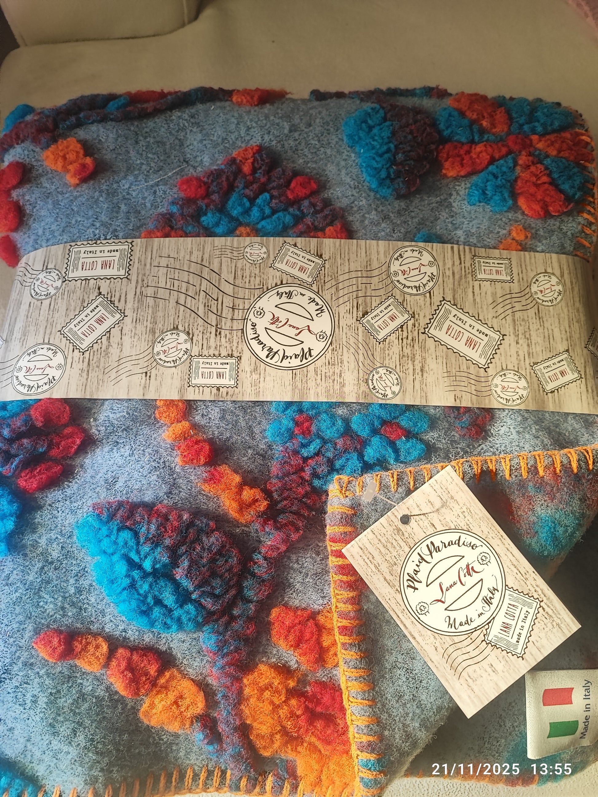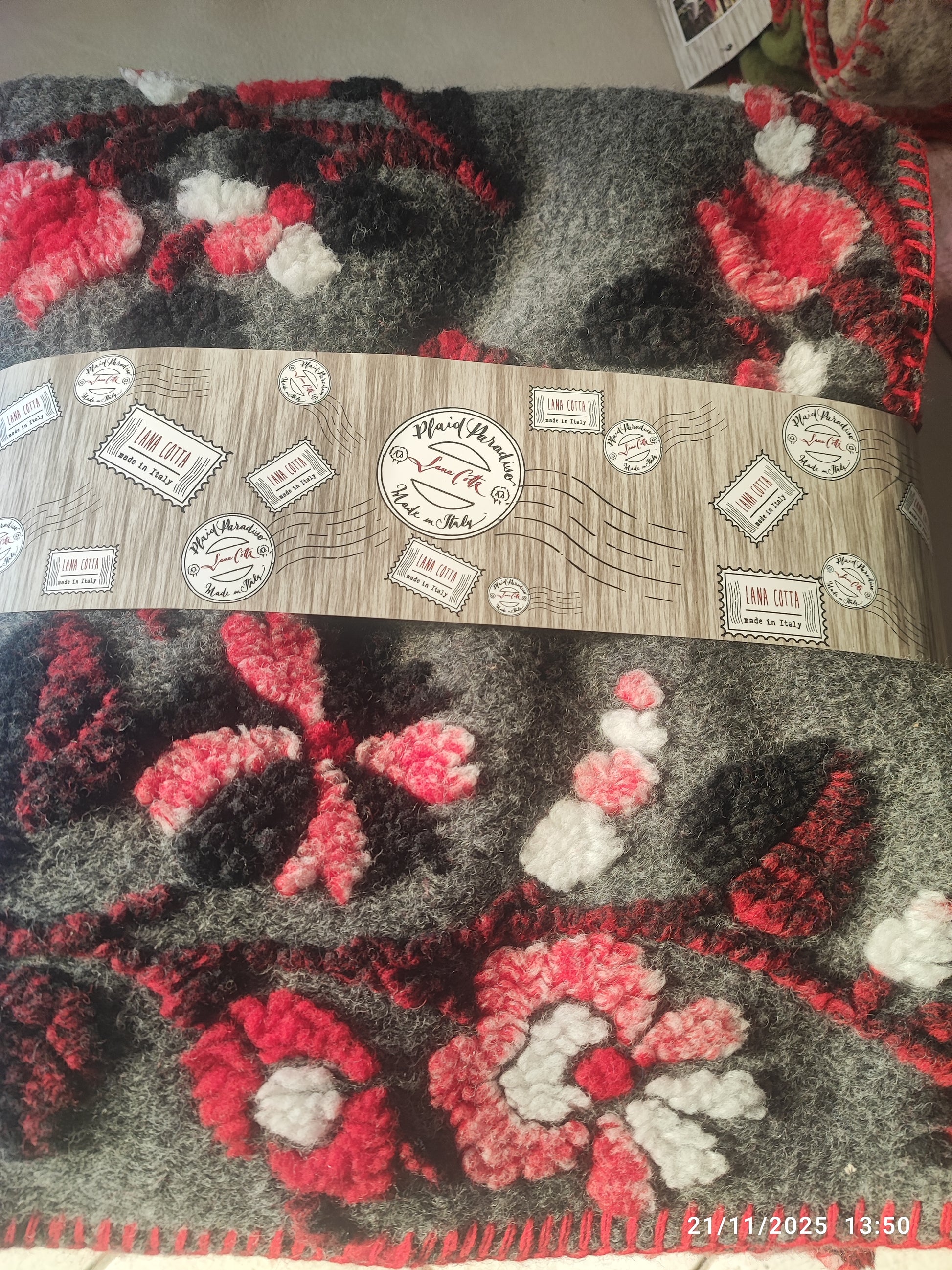 Plaid in lana cotta Fiori in rilievo produzione artigianale Toscana 150x170