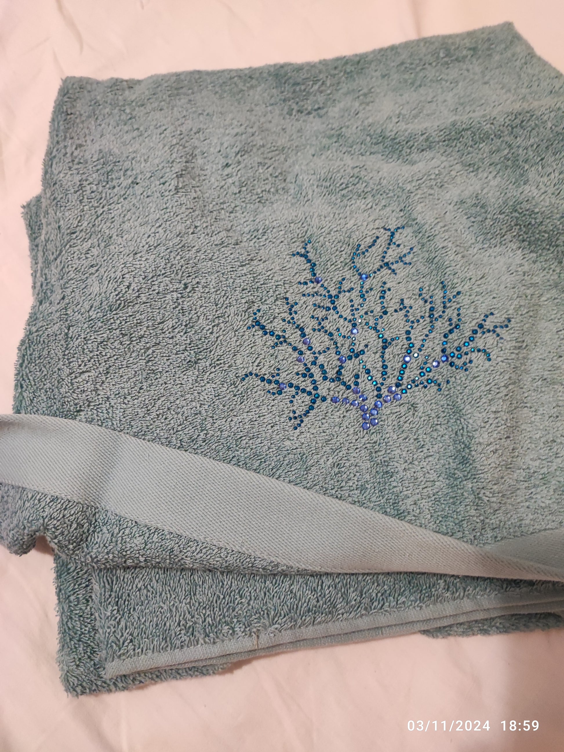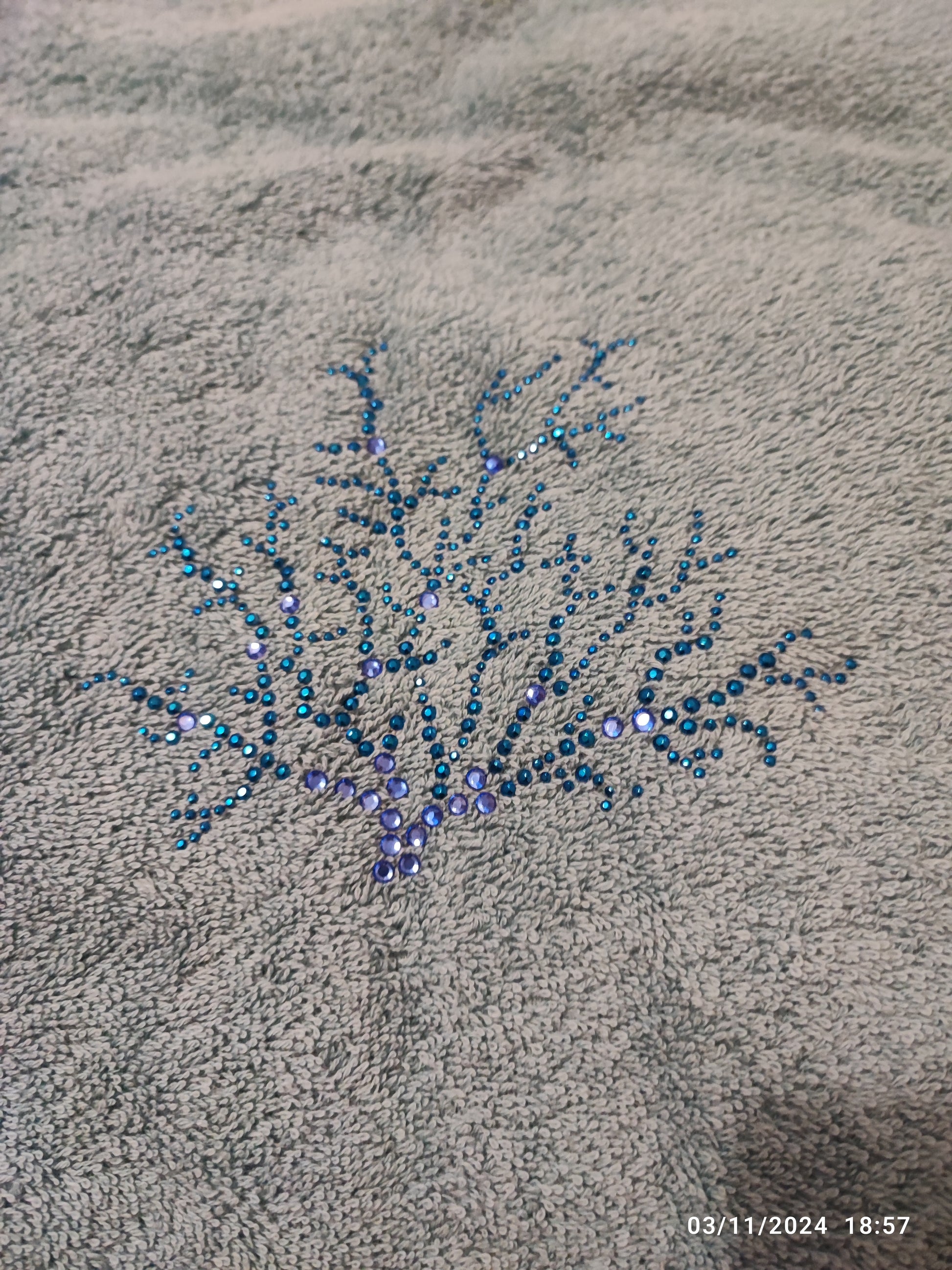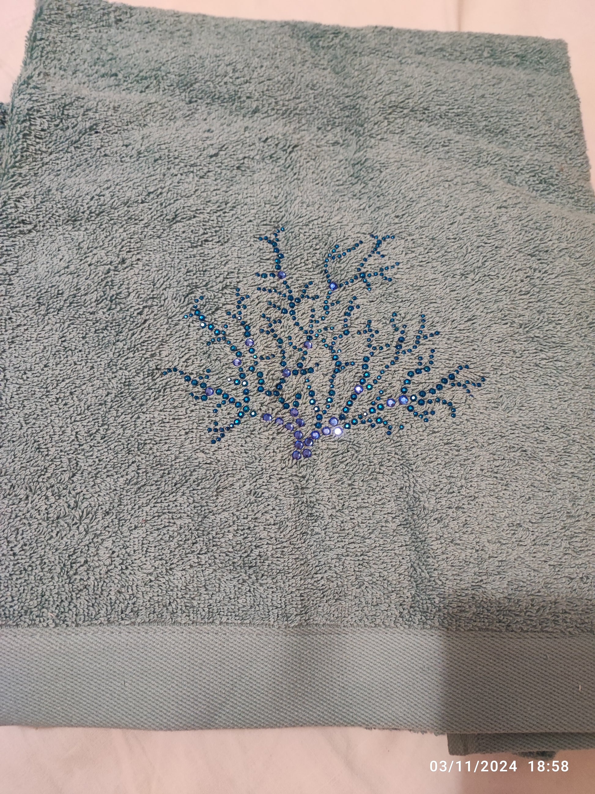 Coppia di asciugamani mani più viso con ricamo corallo in rilievo con applicazione Swarovski ottima grammatura, disegnato e progettato in Italia della Yachting club.