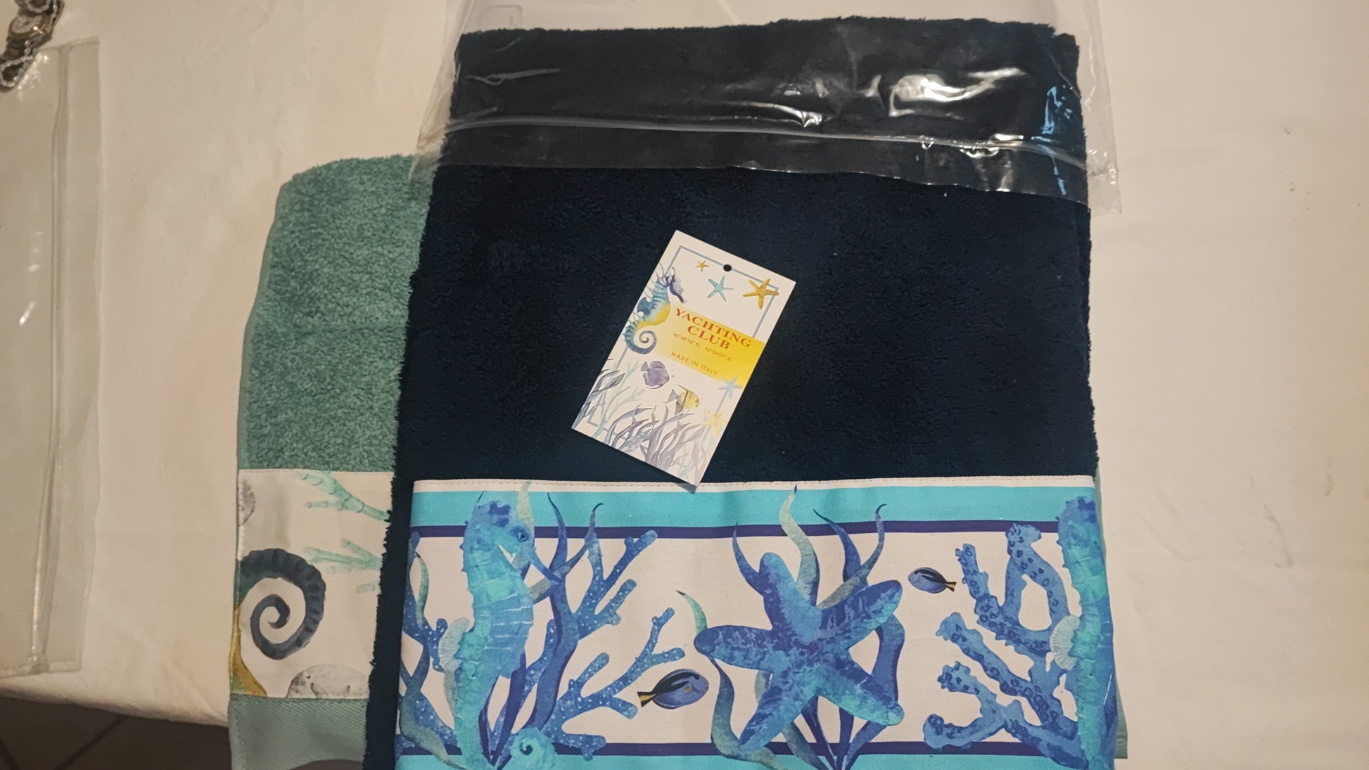 Asciugamani da bagno da mani più ospiti ottima grammatura prodotto e disegnato in Italia. Con balza disegno mare.