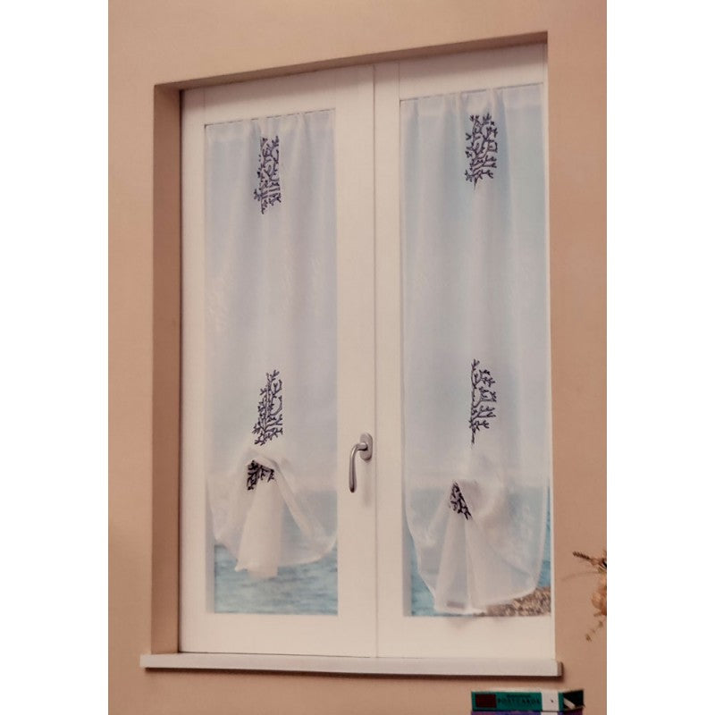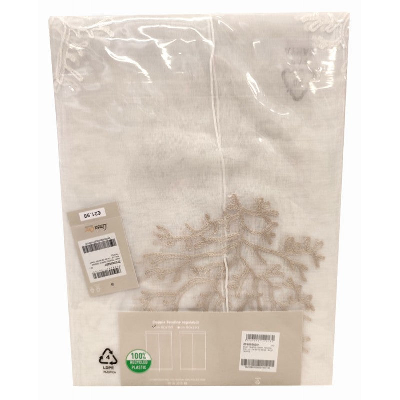 Coppia tendine Saint Tropez da Linea oro. 100% poliestere, confezione da 2 pezzi 60x150cm e 60x230cm. Tessuto semicoprente con ricamo con corallo