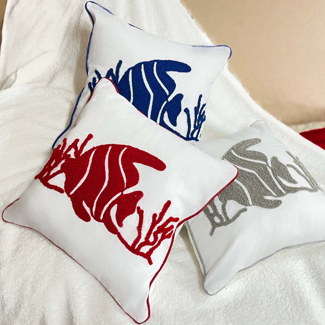 Copricuscino pesce ricamato in rilievo , Fish punto in Spugna in rilievo dghome