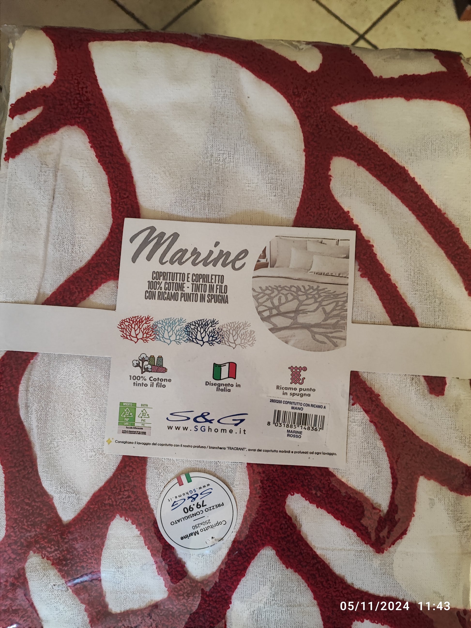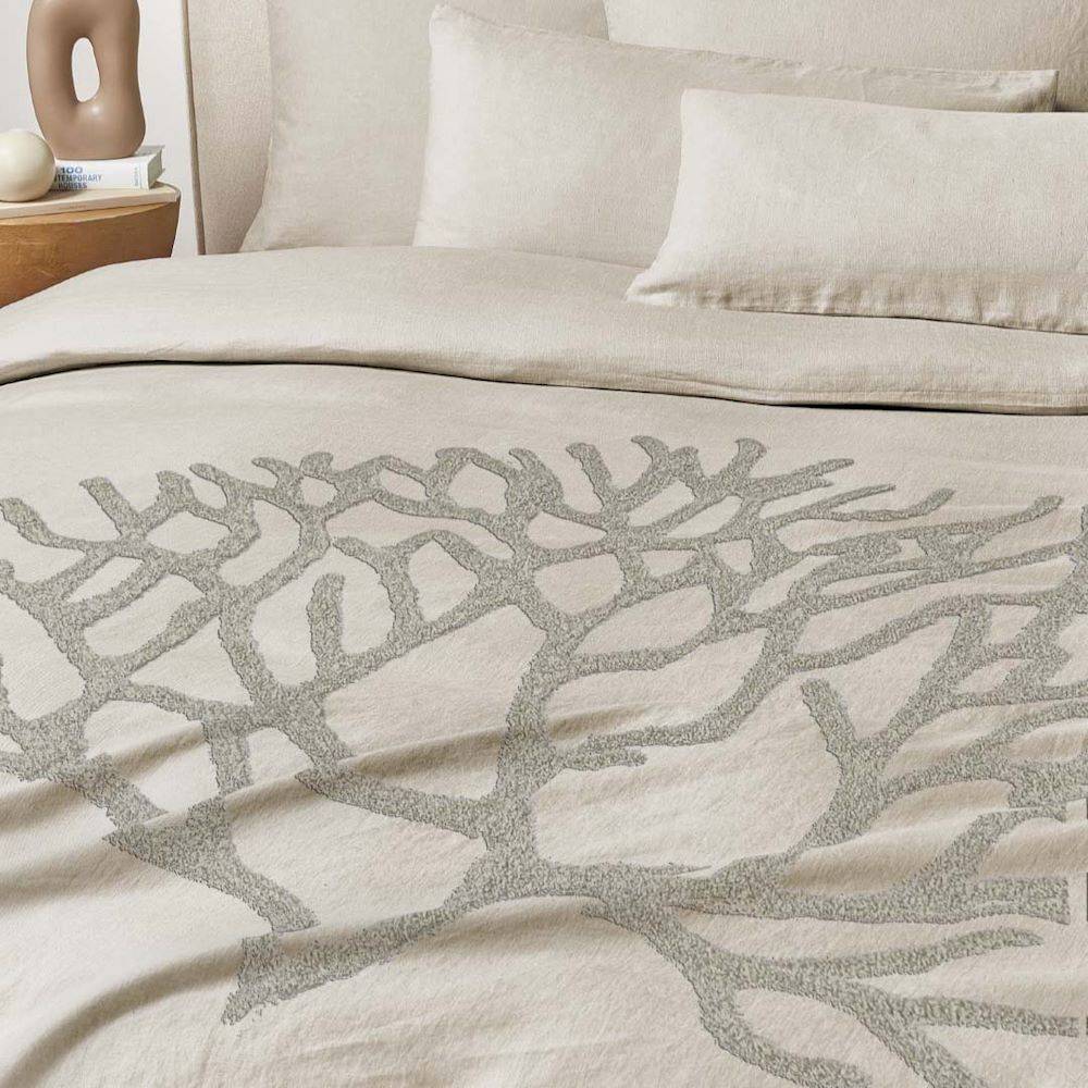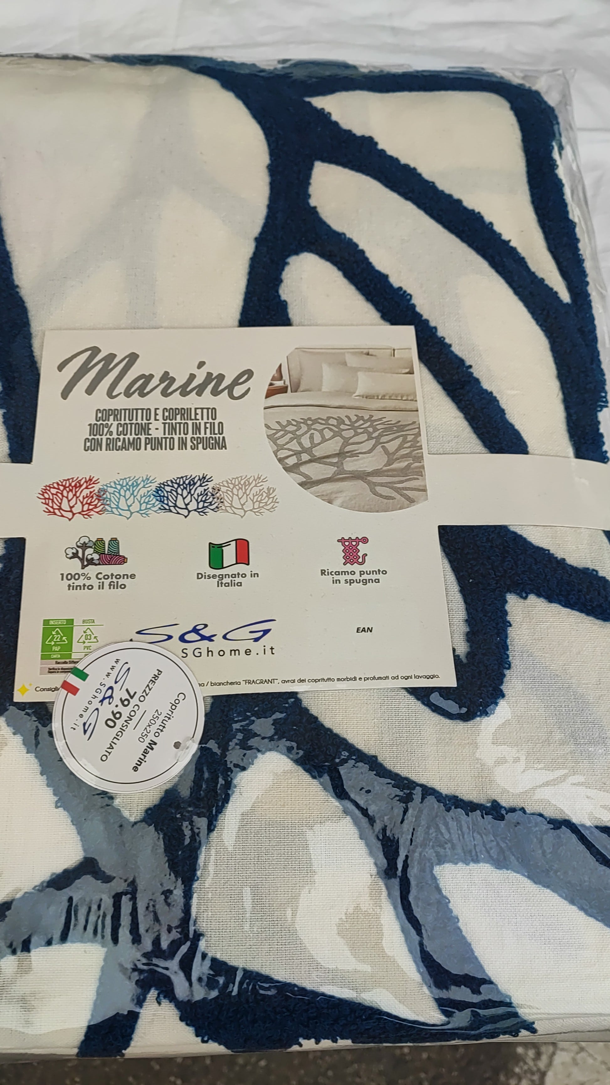 Copriletto Marine con punto in spugna ricamo grande corallo su sghome