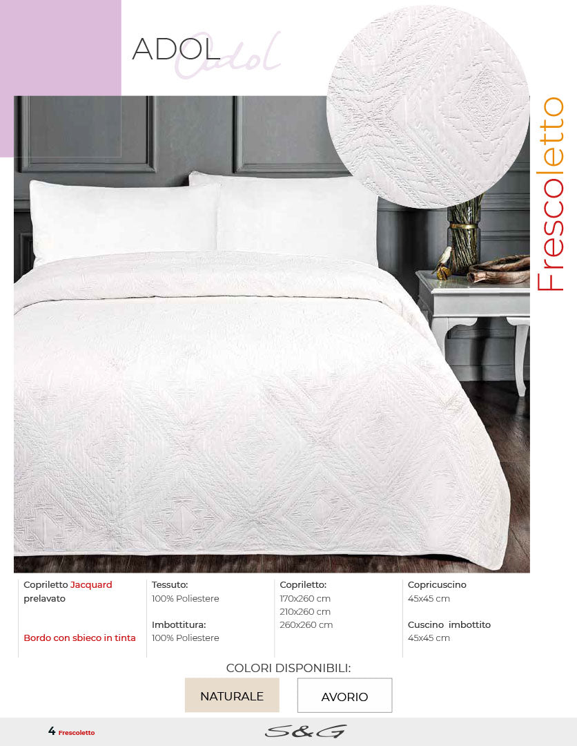 Copriletto Matrimoniale 260x260 Jacquard Adol , bordo con sbieco in tinta, prodotto Sghome.