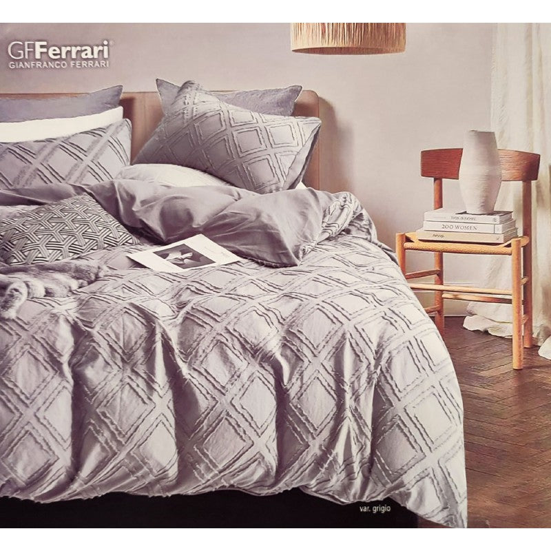 Parure copripiumino Lory da GF Ferrari, ottima azienda italiana di biancheria per la casa. Bellissima lavorazione jacquard fil coupè, 100% poliestere. Disponibile nella misura letto matrimoniale / due piazze. Un prodotto di alta qualità.