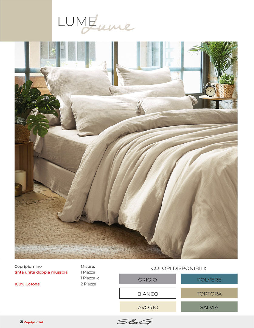 Copripiumino Lume tinta unita doppia mussola produzione italiana Sghome