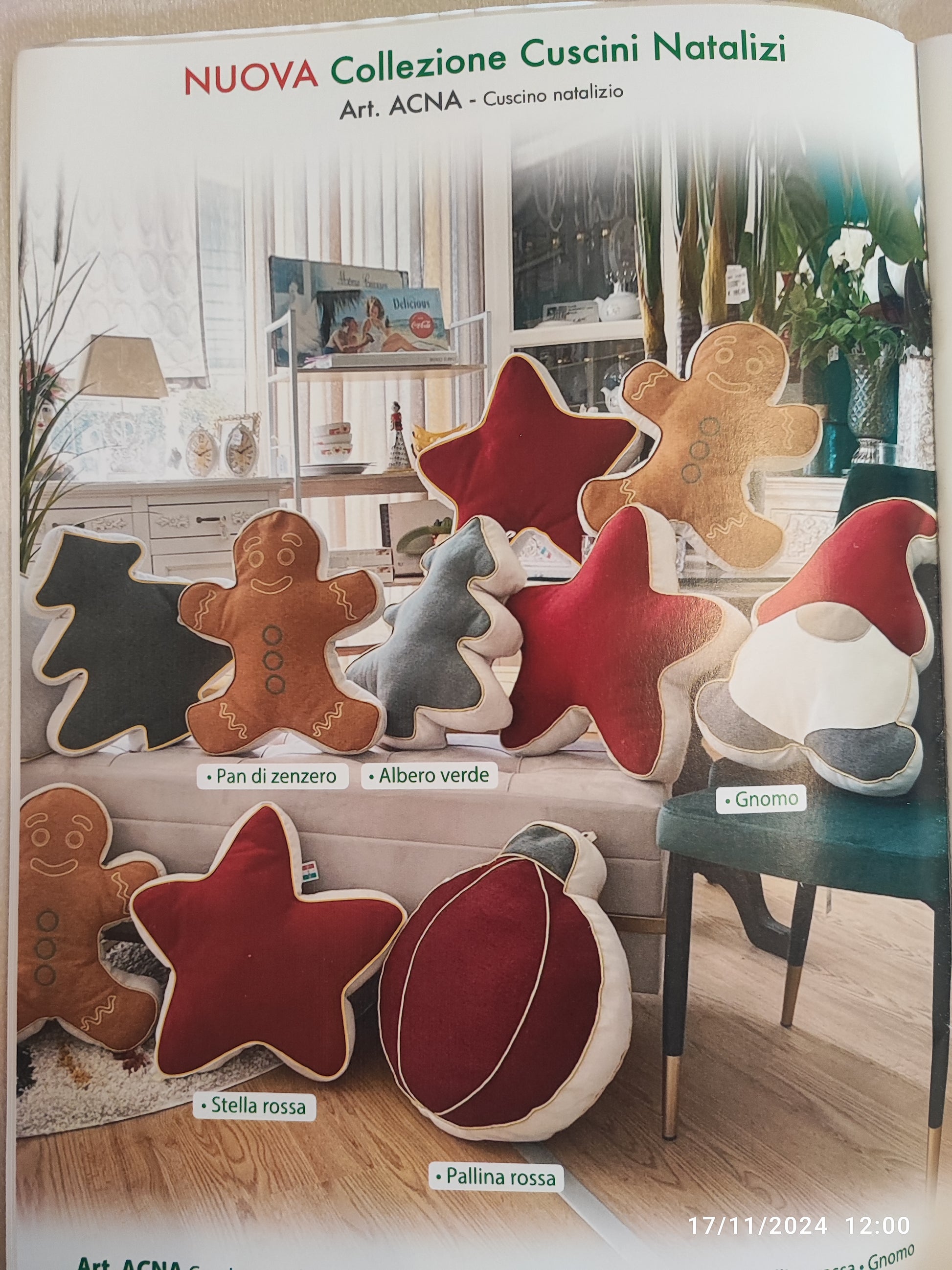 Cuscini anche da appendere a forma di Gnomo, Stella di Natale, Albero Verde,Pan di Zenzero, Pallina rossa collezione Natale produzione Italiana