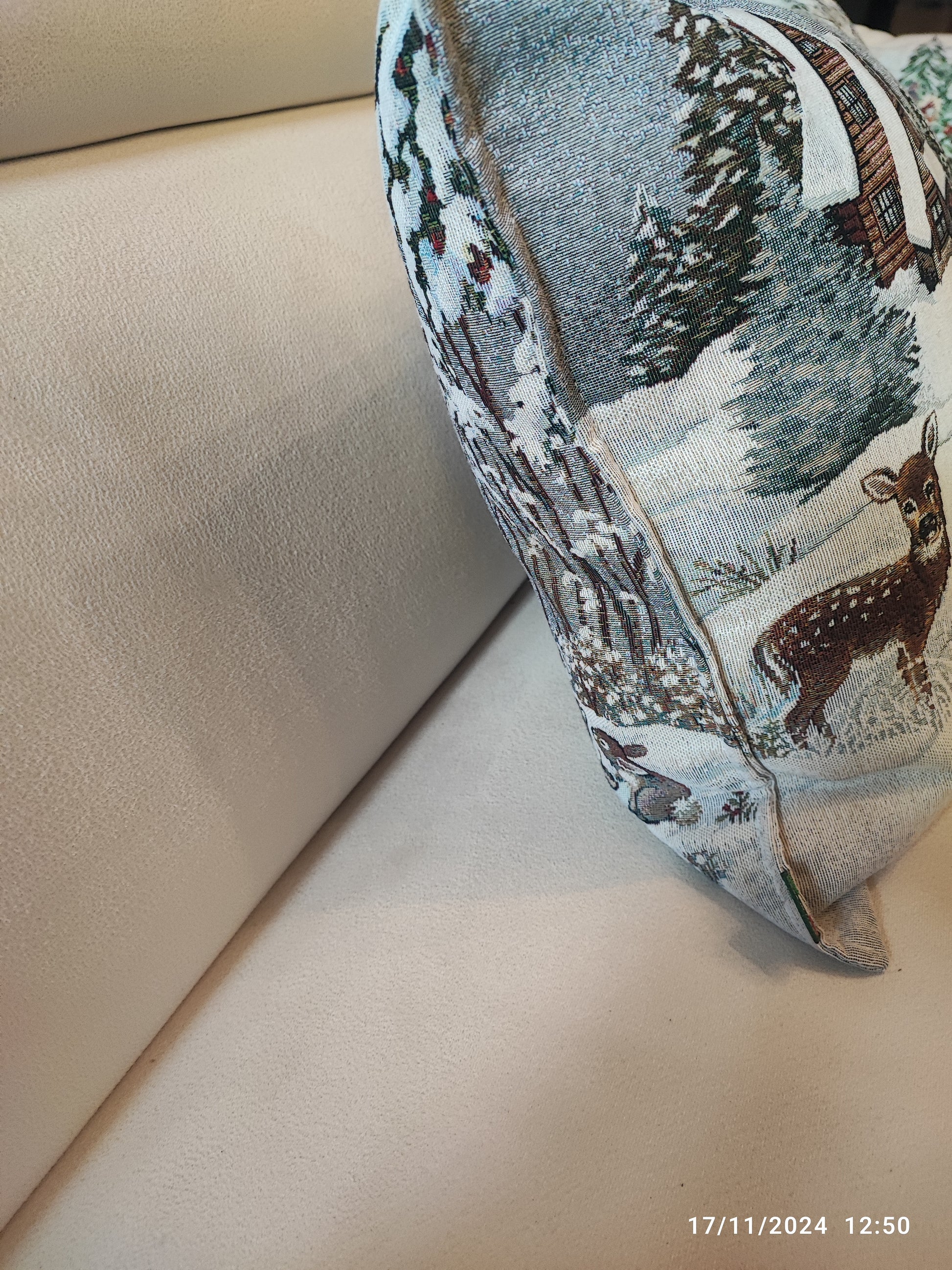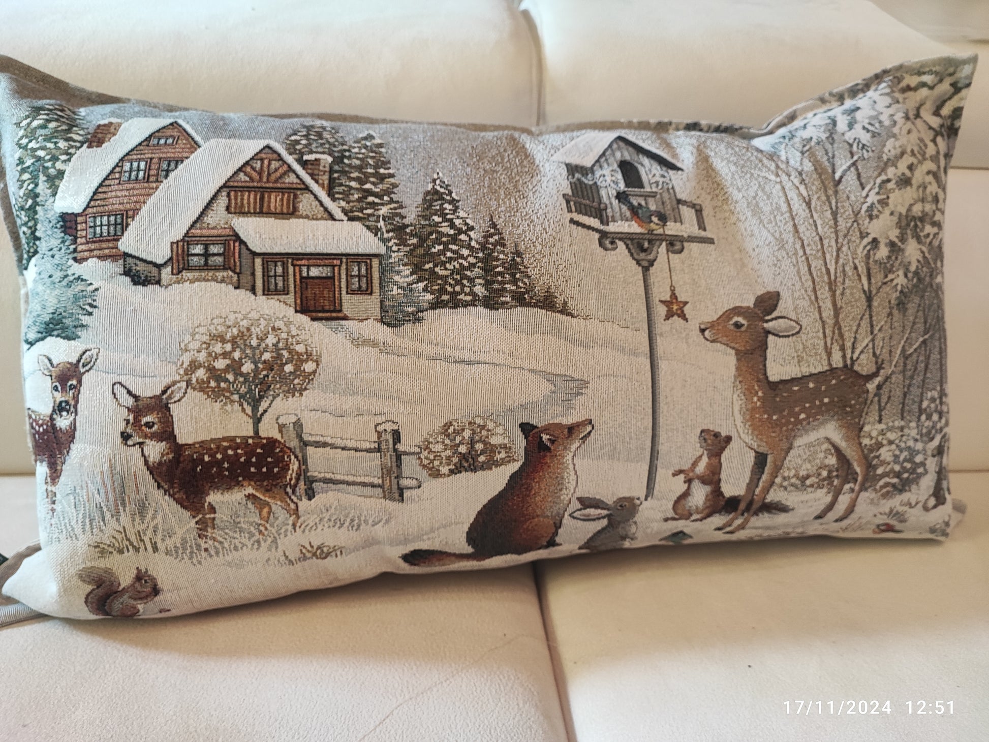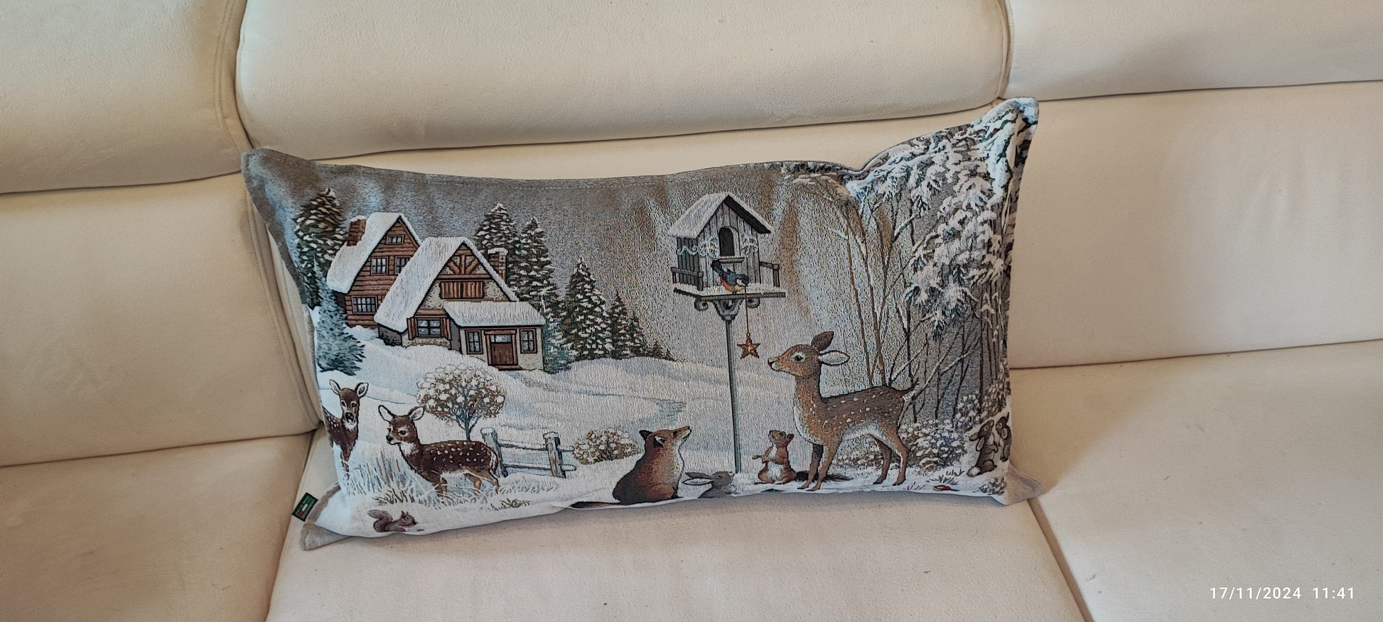 Cuscino in gobelin disegnato in entrambi i lati con disegno Winter con cerniera sfoderabile misura 47x80 con interno.