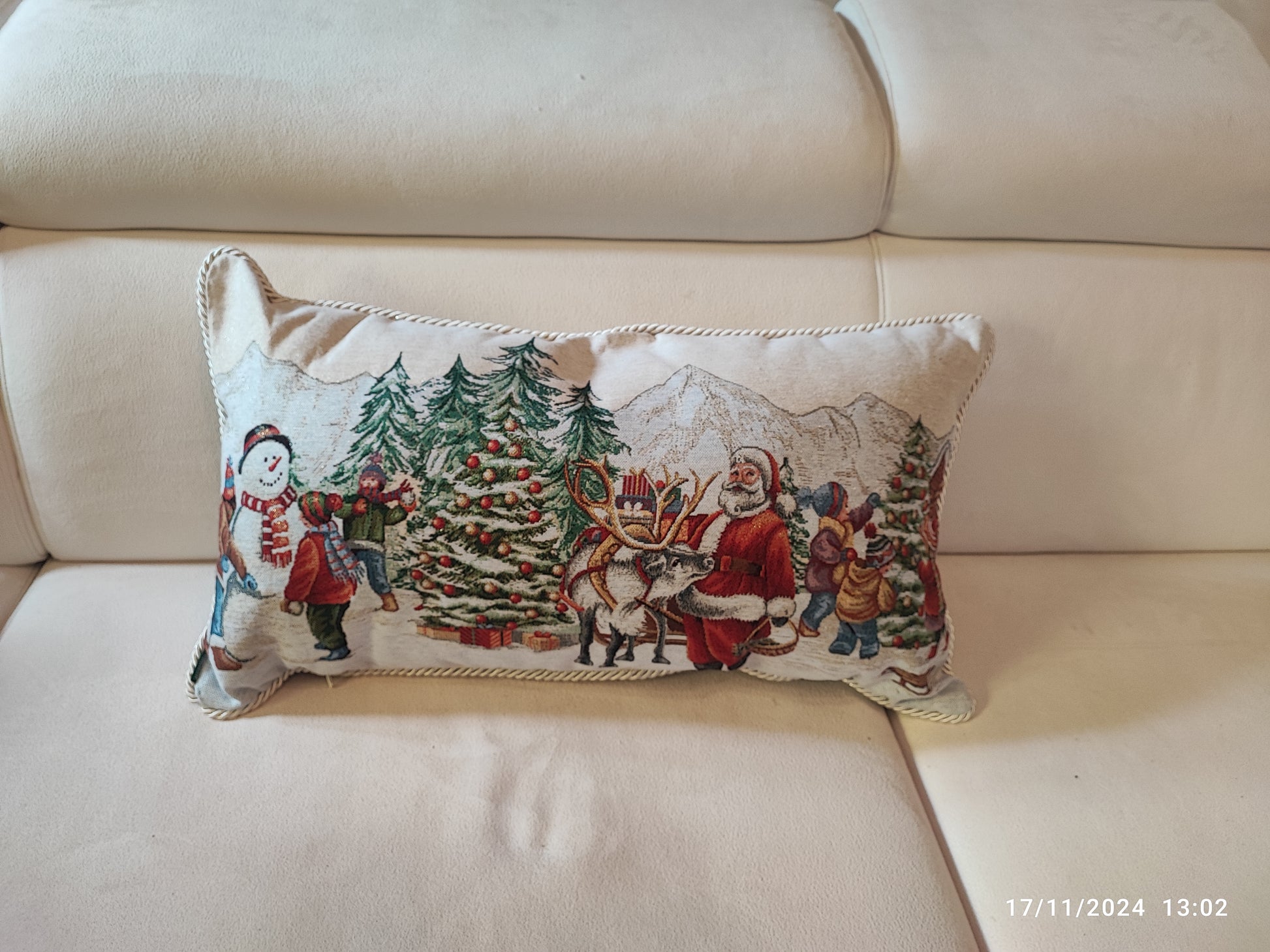 Cuscino in gobelin disegnato in entrambi i lati Abete con cordone e cerniera sfoderabile misura 70x35 con interno.