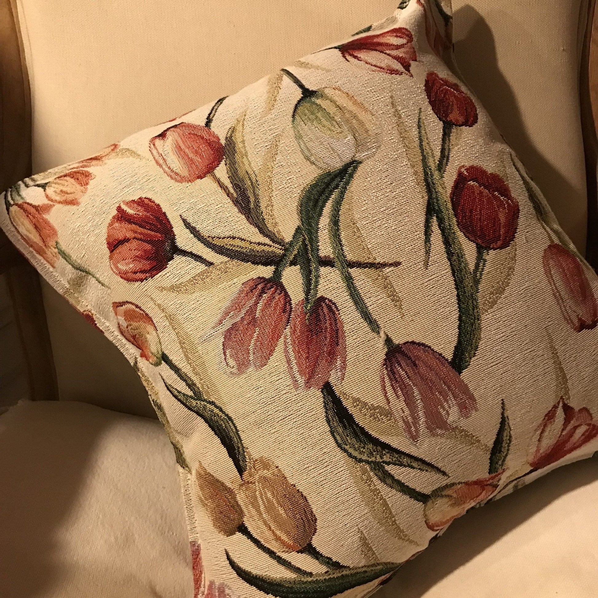 Cuscino quadrato con decoro di tulipani. Oggetto perfetto per ogni stanza della vostra casa ma anche un pensiero molto carino da regalare.