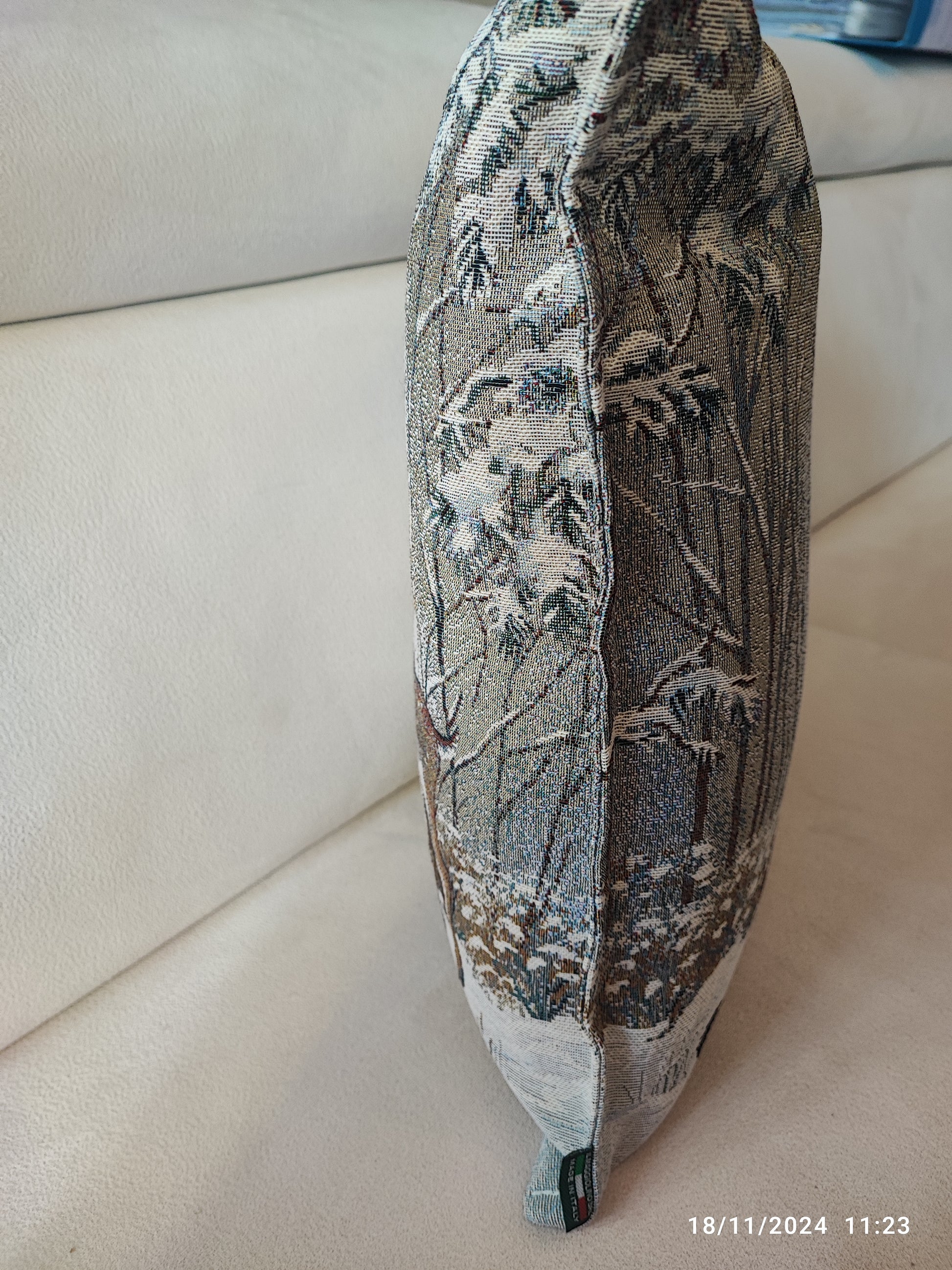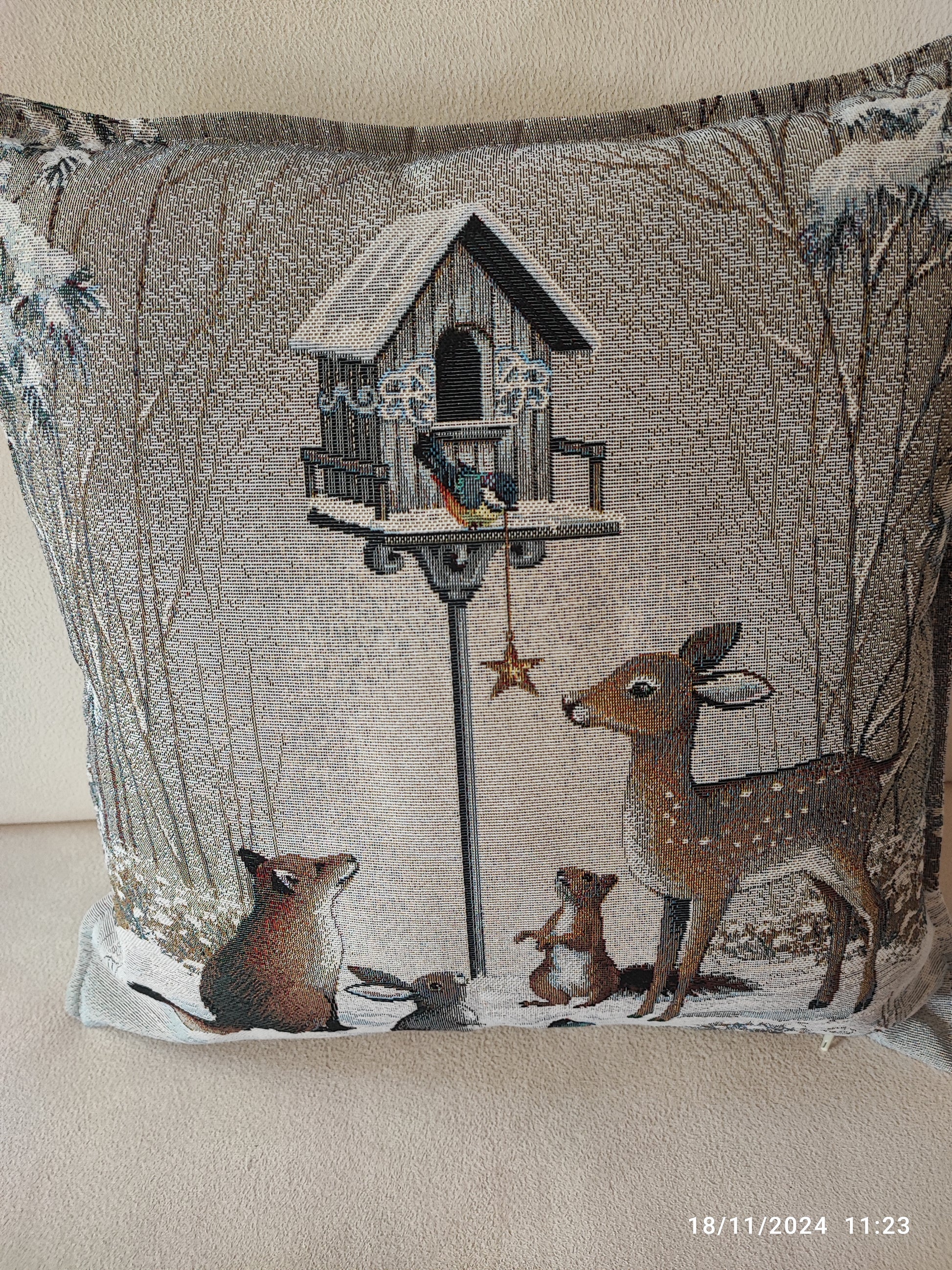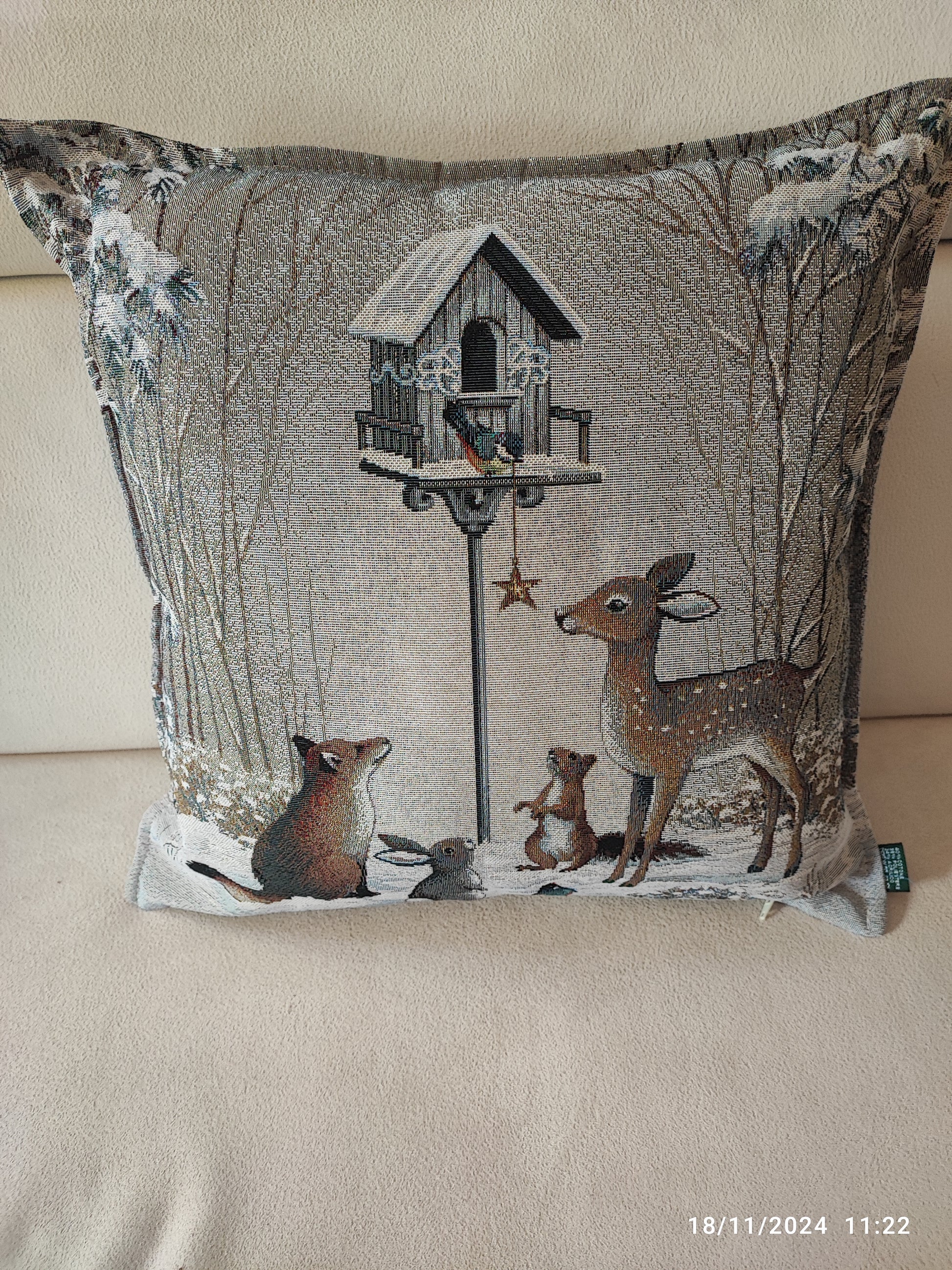 Fodera in gobelin disegno Winter, da entrambi i lati misura 40x40.