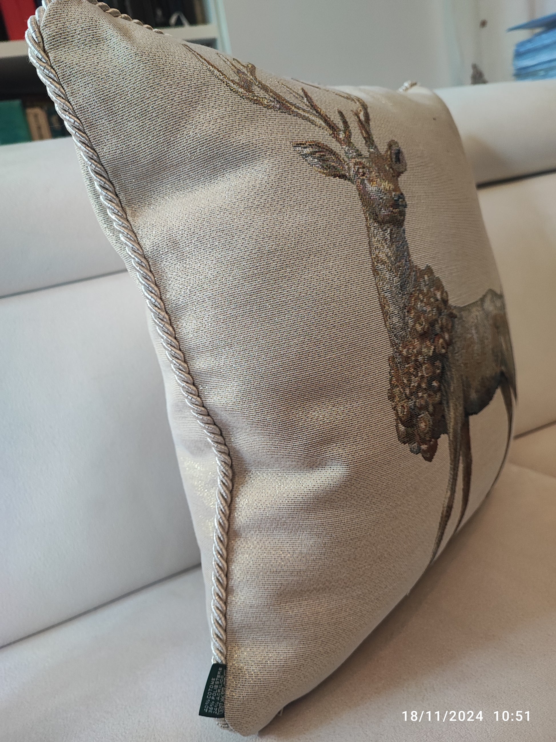 Cuscino/Fodera Renna oro lurex con cordone sfoderabile 40x40 produzione italiana