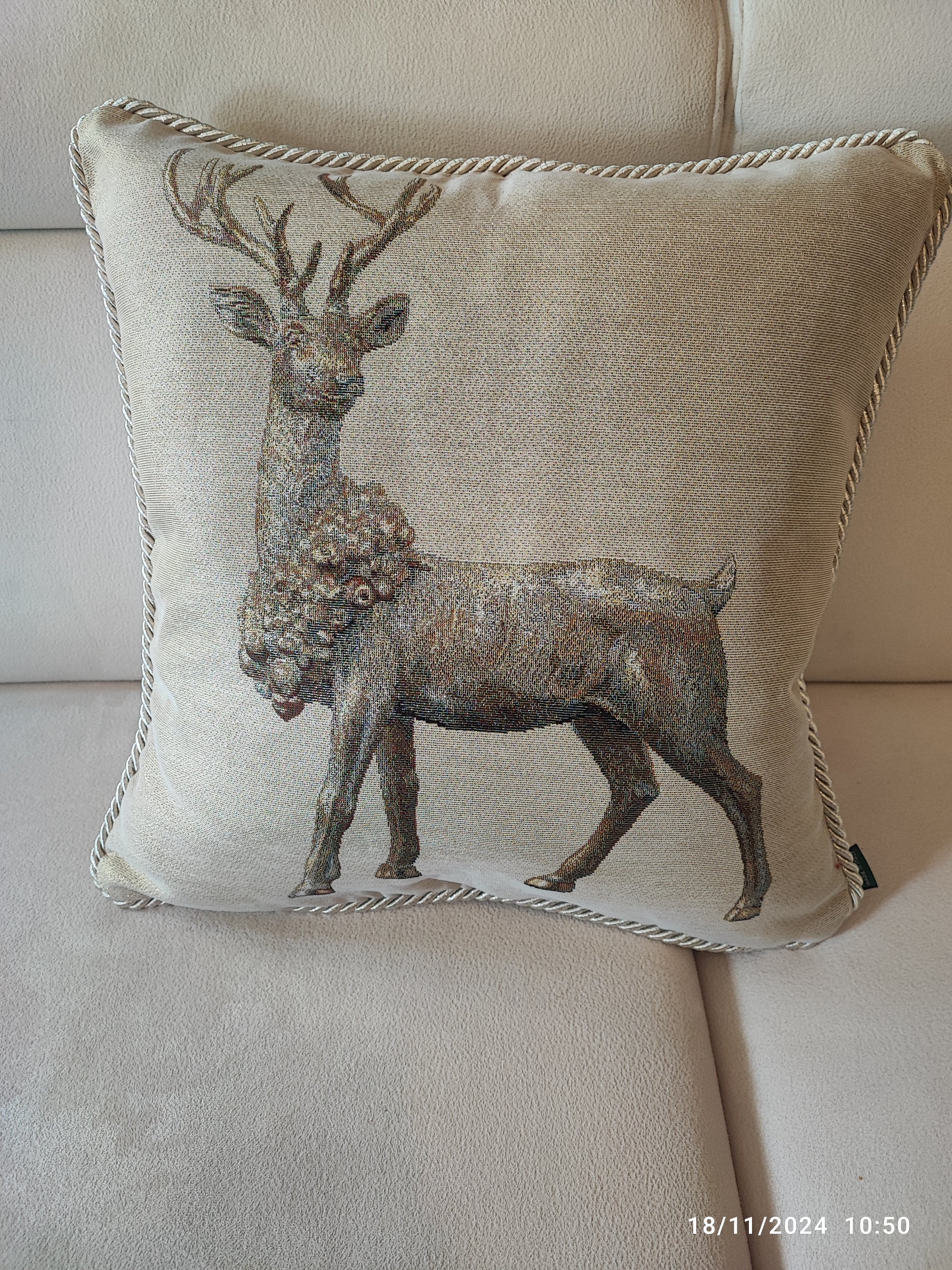Fodera in gobelin con cordone disegno Renna oro lurex , da entrambi i lati misura 40x40.