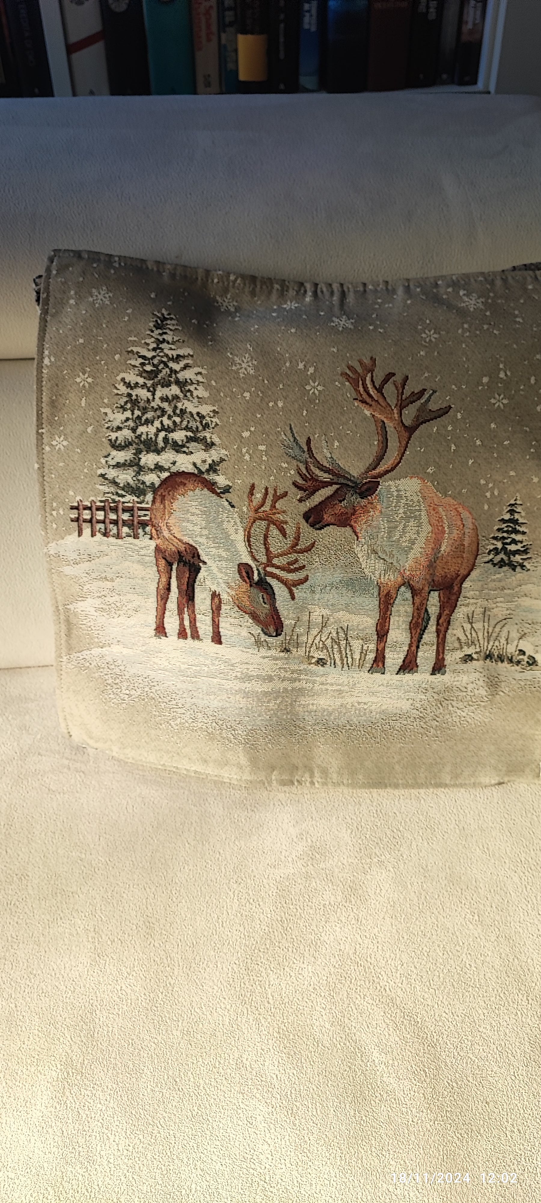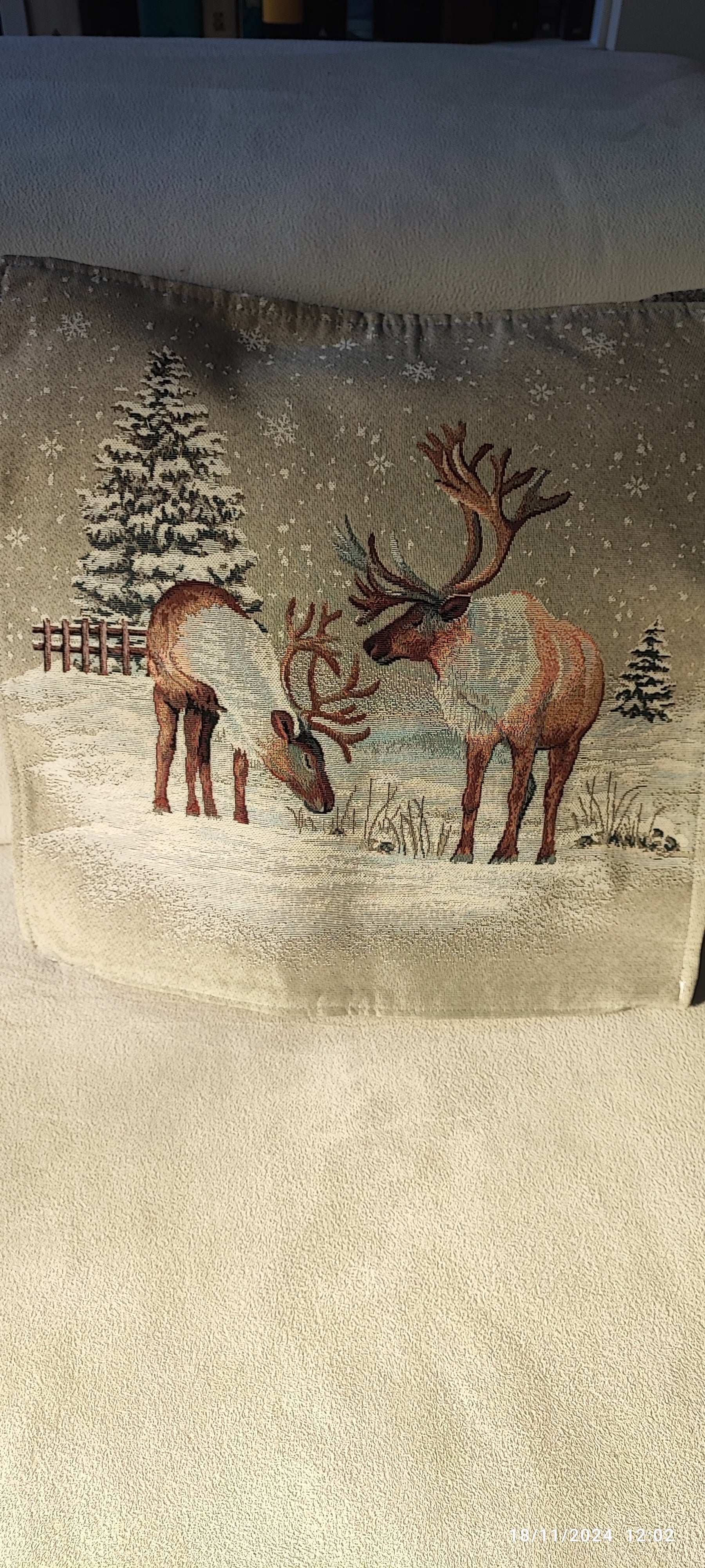 Fodera/Cuscino Cervi Paese innevato in tessuto Gobelin misura 40x40 sfoderabile produzione Italiana