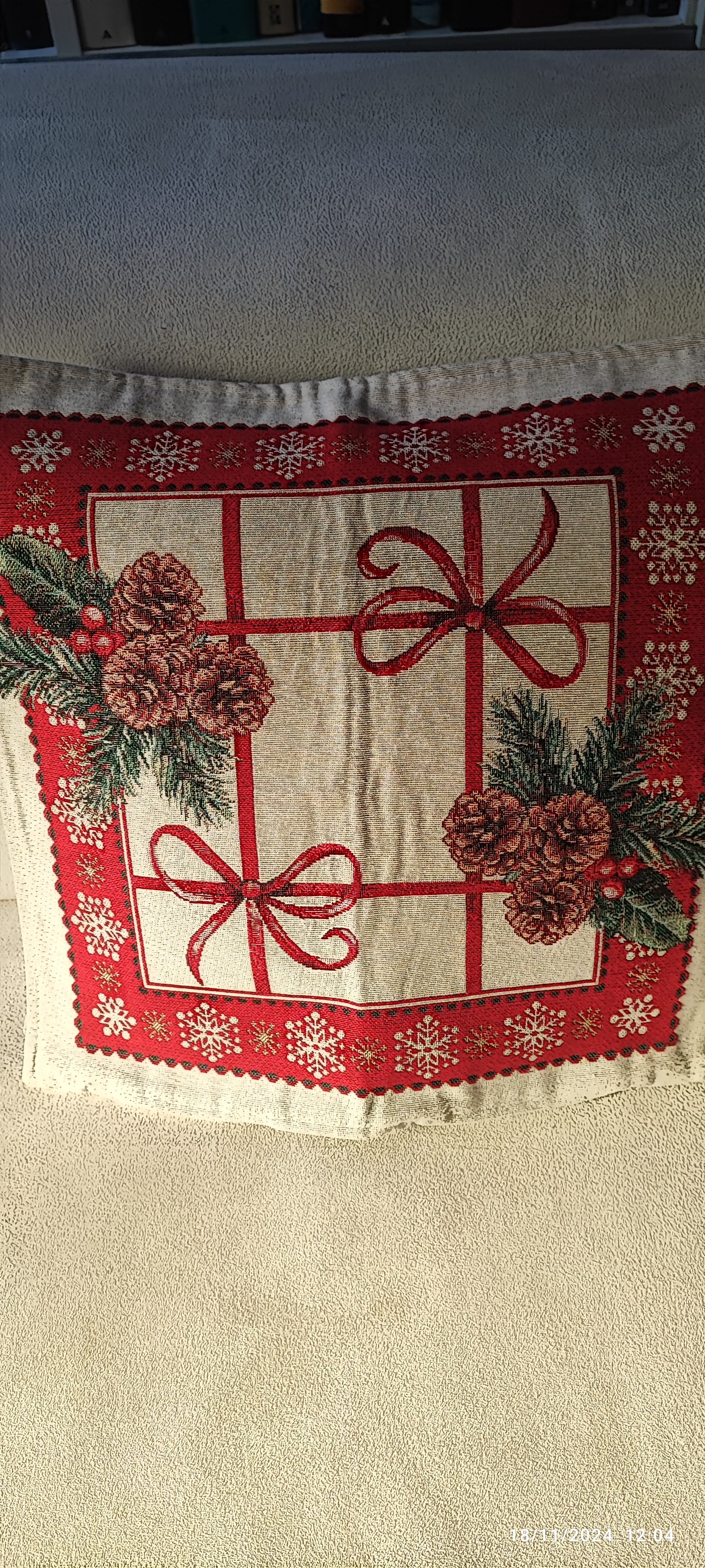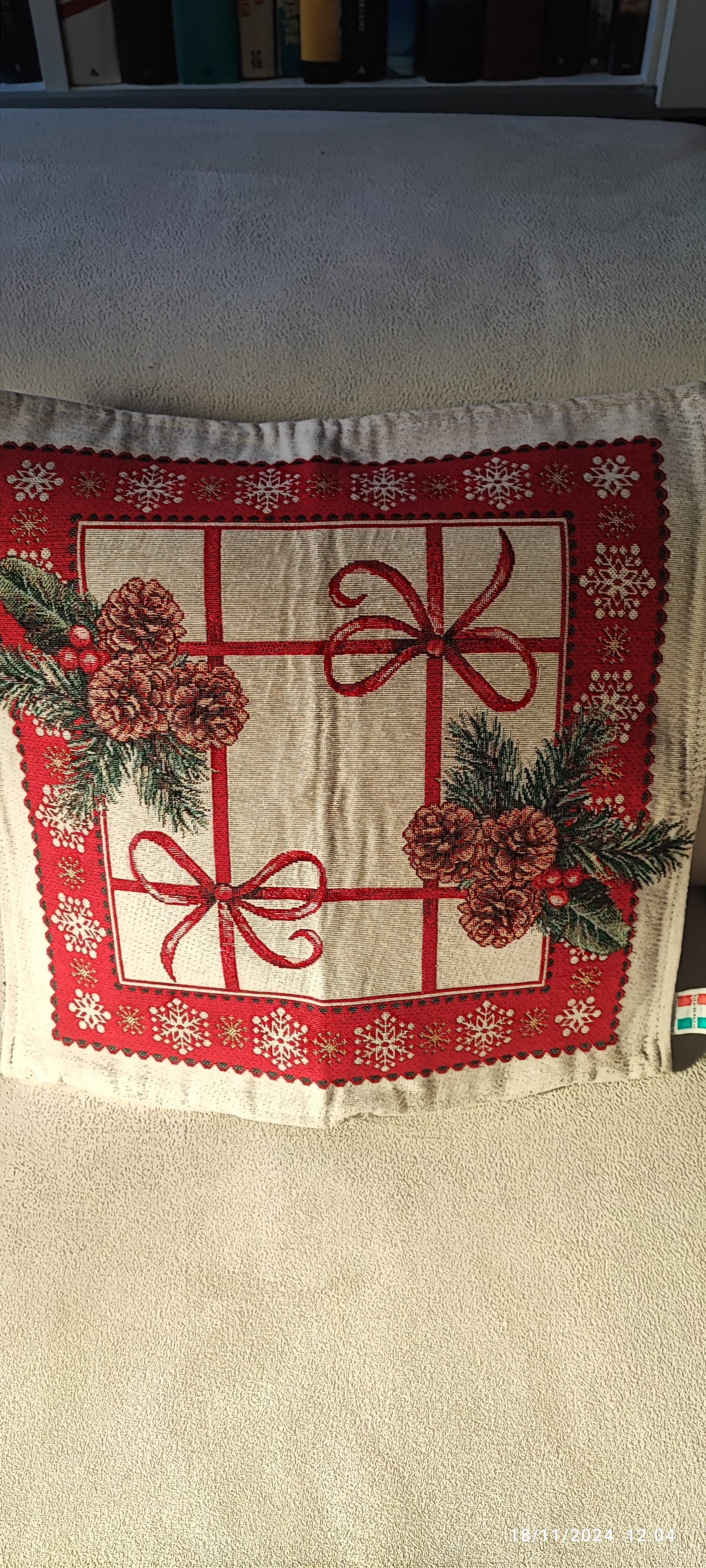 Fodera/Cuscino Pigne con fiocchi, in Gobelin, sfoderabile, disegnata su entrambi i lati produzione Italiana