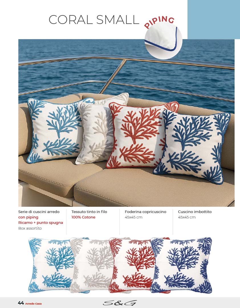 Fodere con Corallo small sia con cuscino interno 45x45 che senza ricamo punto in spugna e piping 100% cotone