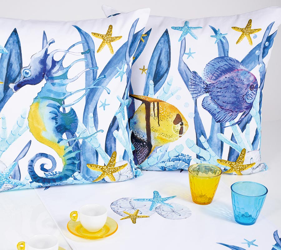 Cuscini fodere misura 50x50 puro cotone disegno digitale pesci con interni made italy puro cotone made italy,linea yatching club.