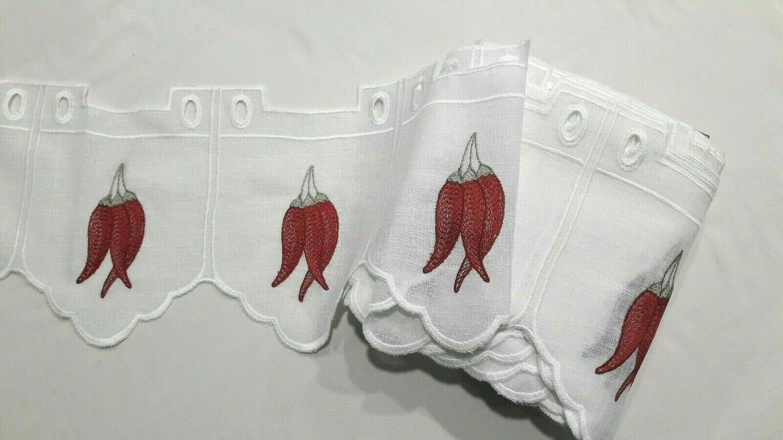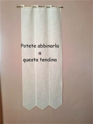 Come potete vedere in una delle foto questo tipo di mantovane si può abbinare ad una tendina simile completamente bianca, con lo stesso smerlo e gli stessi occhielli, disponibile in diverse lunghezze.