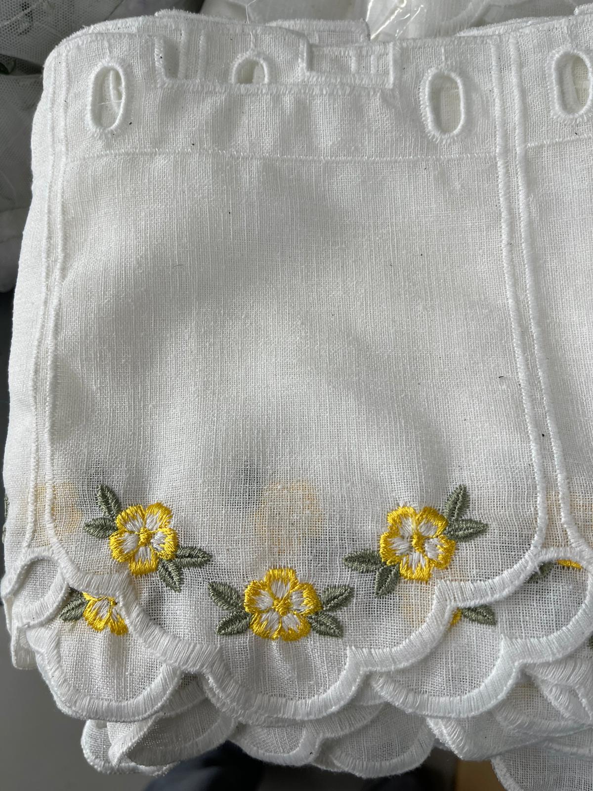 Mantovanina ricamata fiore giallo, tessuto mistolino, disegnata prodotta in In Italia.