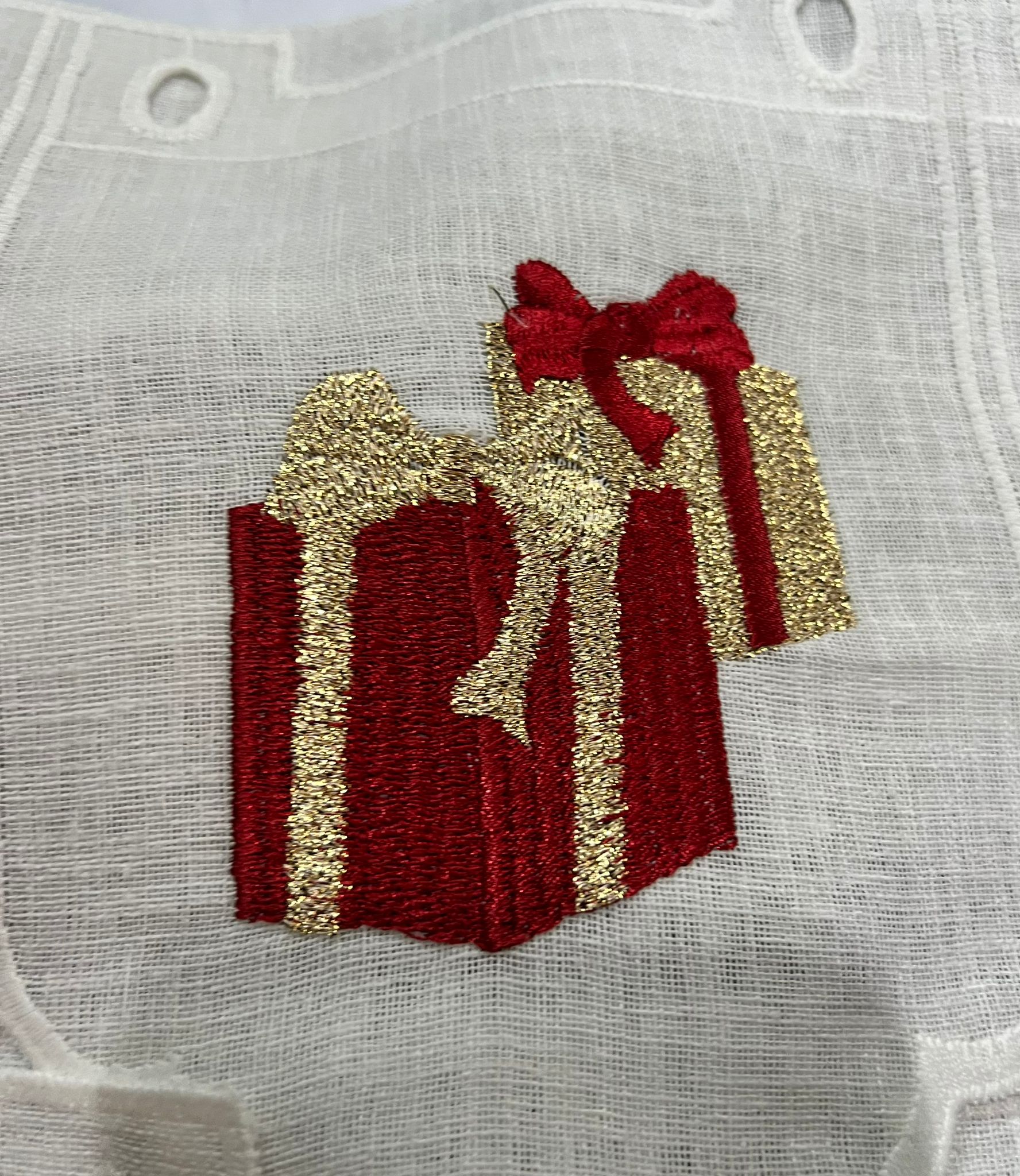 Mantovanina Doni Lurex dorato nel rosso e argento nel blu h 23 ricamata disegnata e prodotta in Italia