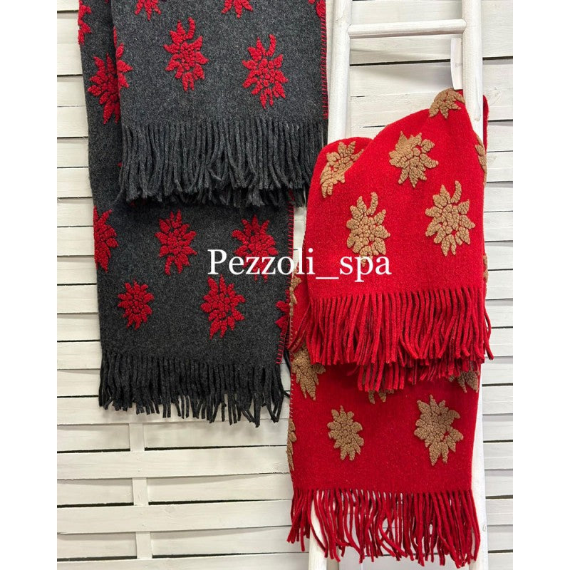 Plaid in lana cotta con frange Stella Alpina da Perlatex, artigianato italiano.