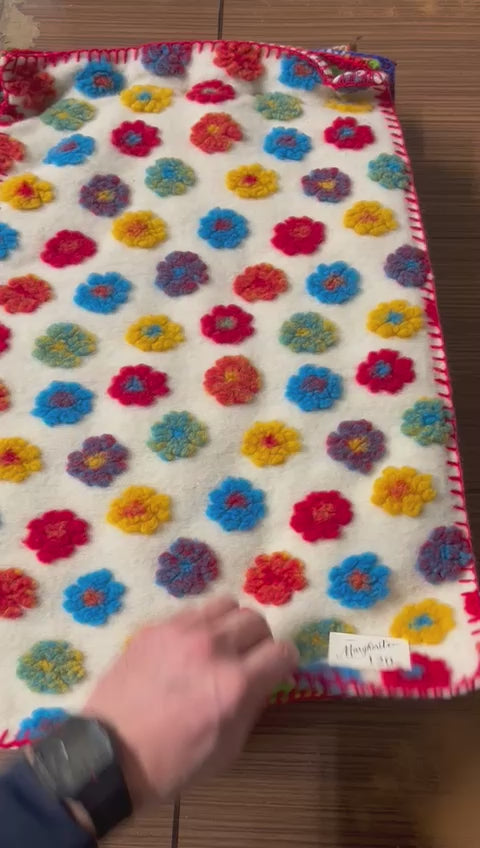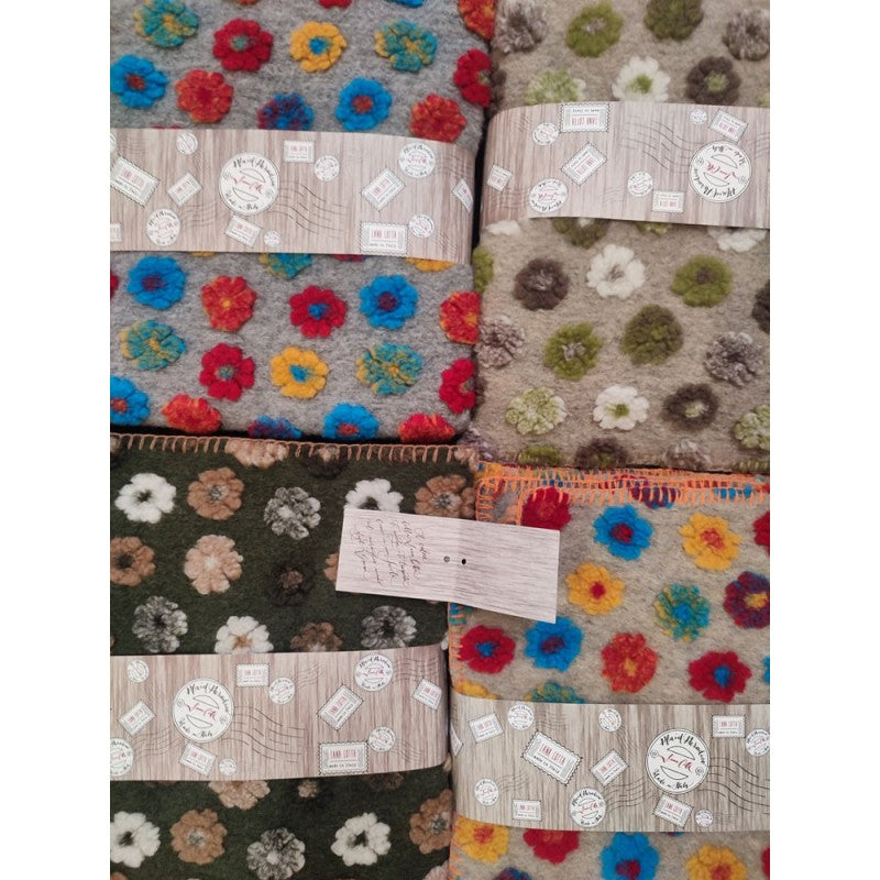 Plaid lana cotta ricamo in rilievo margherite produzione italiana in Toscana