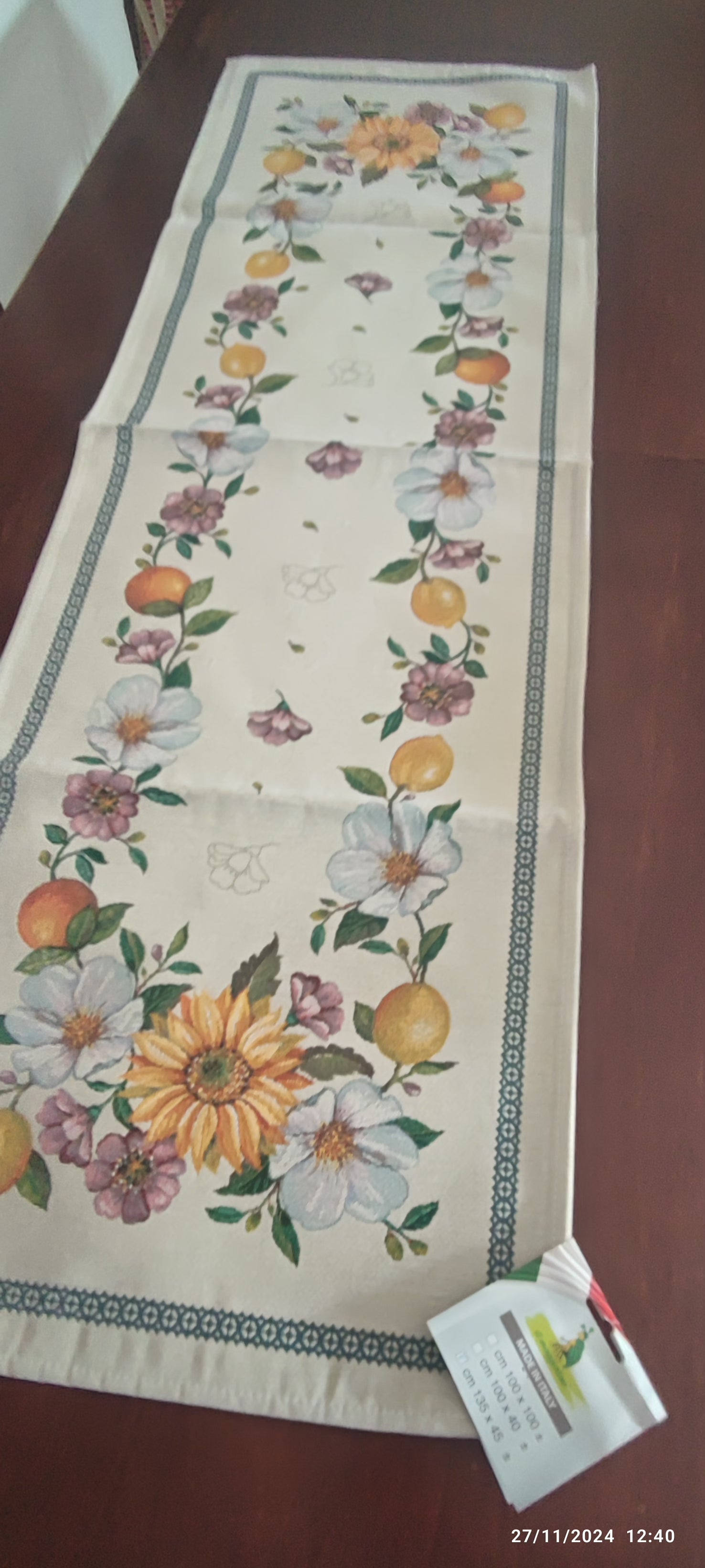 Runner Girasoli in tessuto Gobelin misura larghezza 45x135 , disegnata e prodotta in Italia .