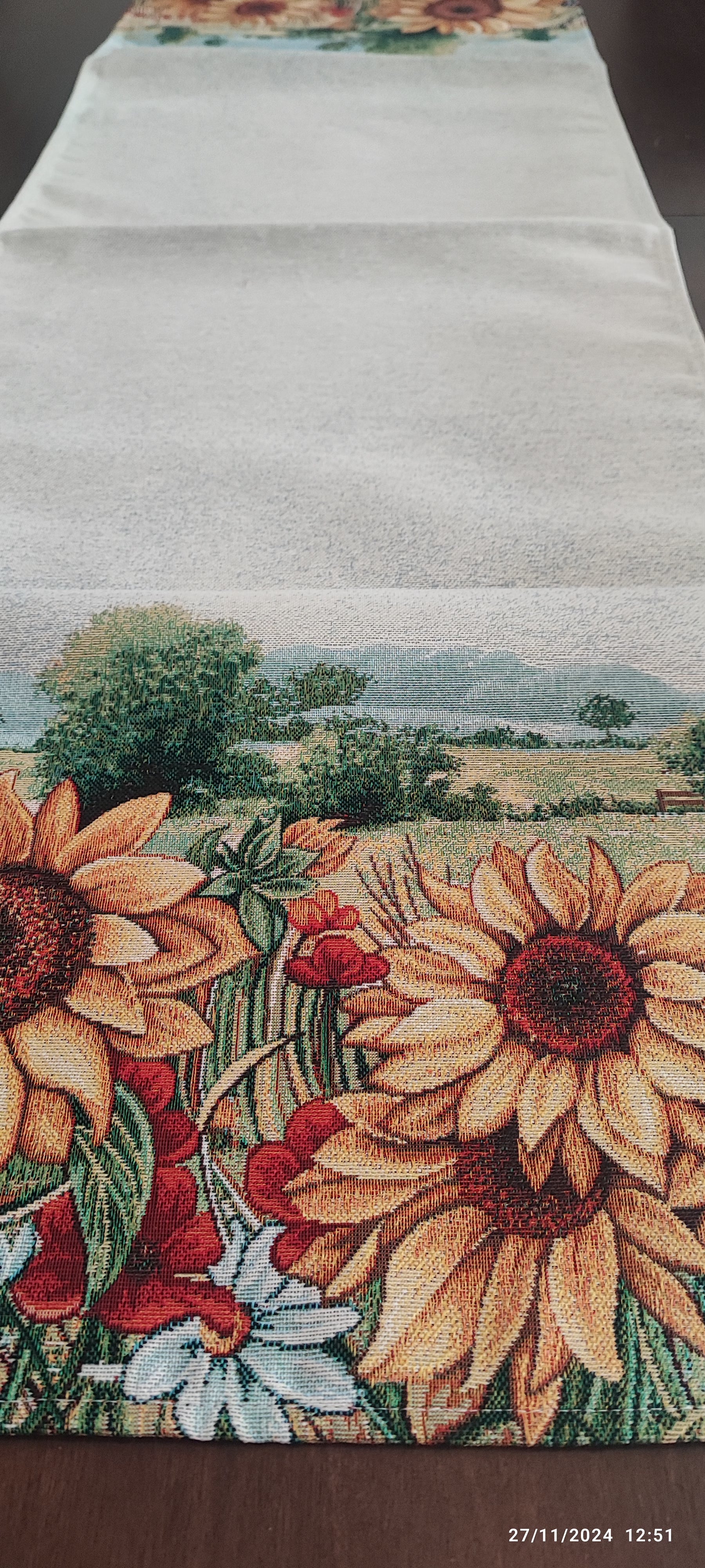 Runner Girasoli in tessuto Gobelin misura larghezza 45x135 , disegnata e prodotta in Italia .