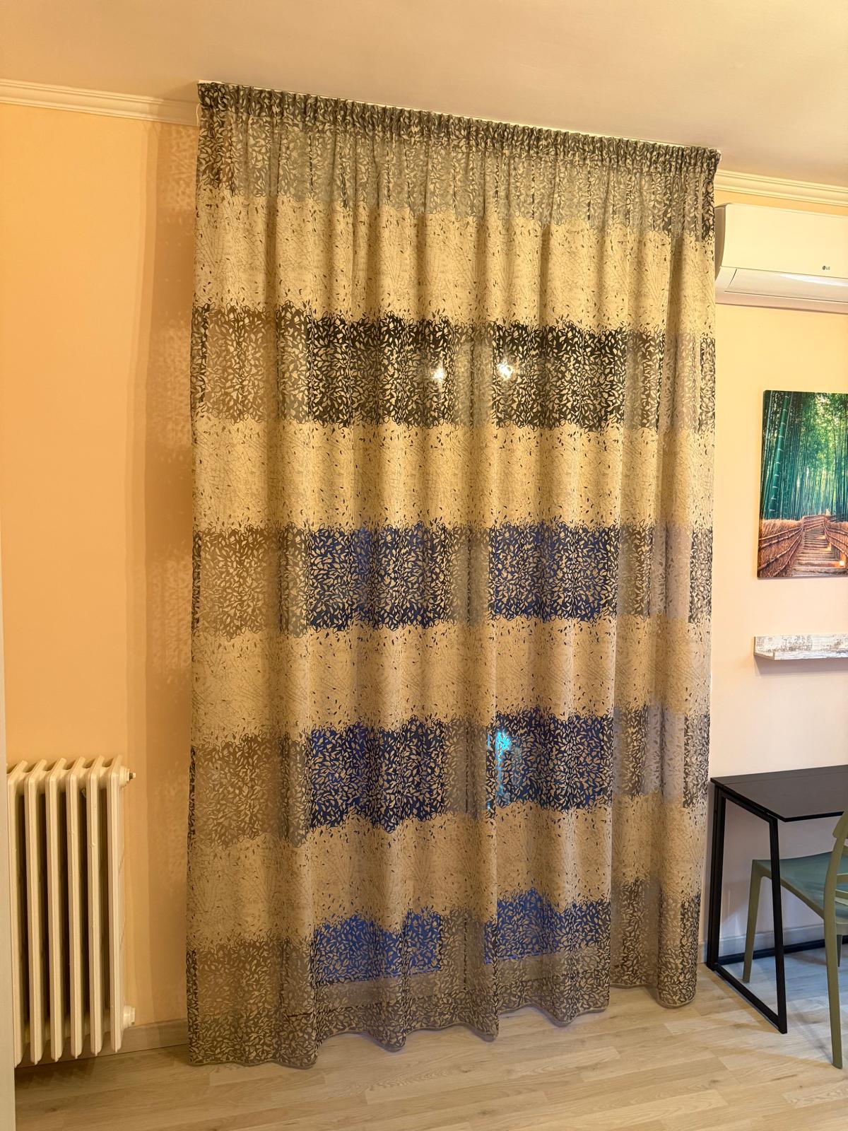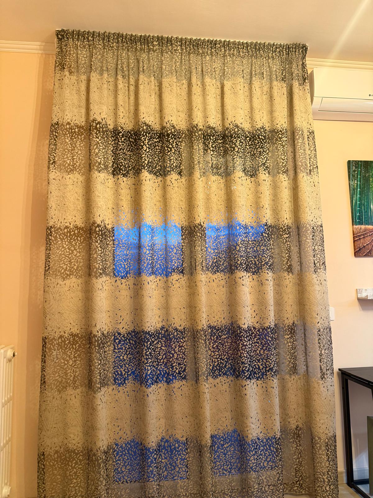 Tenda in devoree' colore tortora con foglioline argentate come in foto.Tessuto alta MT 3.00 con piombo in fondo