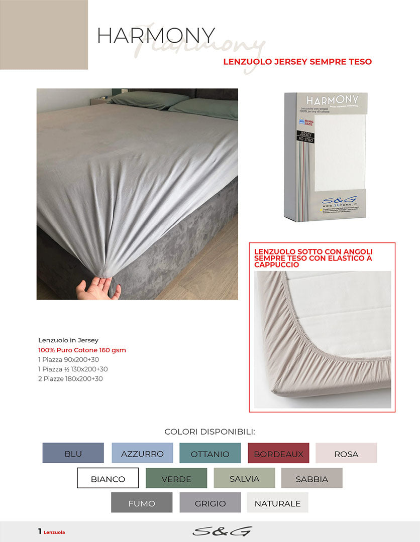 Lenzuolo matrimoniale 180x200 h 30 , in Jersey , 100% puro cotone , 160 GSM.