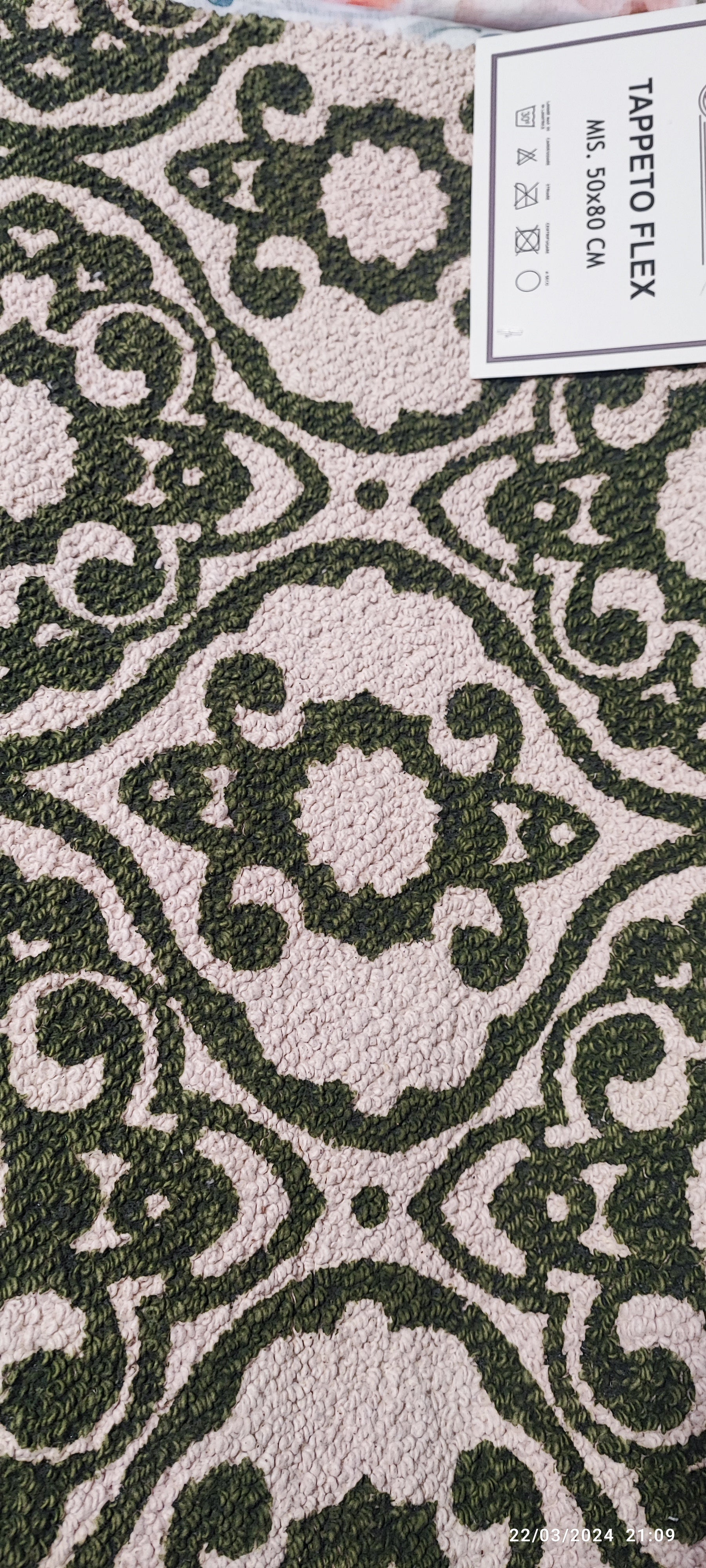 Tappeto Flex , puro cotone al 100% stampato, antiscivolo, di diverse misure disponibili 40x70 , 50x80, 50x110, 50x140, 55x180,55x230 e 55x280. Di diversi colori grigio, marrone, bordeaux, rosa, verde, blu e giallo. Lavabile in lavatrice a 30 gradi.