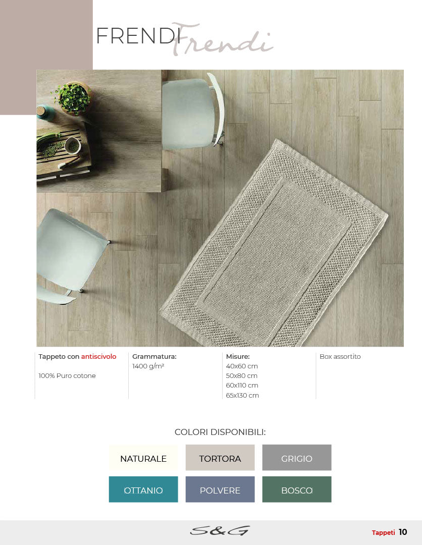 Tappeto Frendi antiscivolo 100% di cotone, grammatura 1400 g/m2.