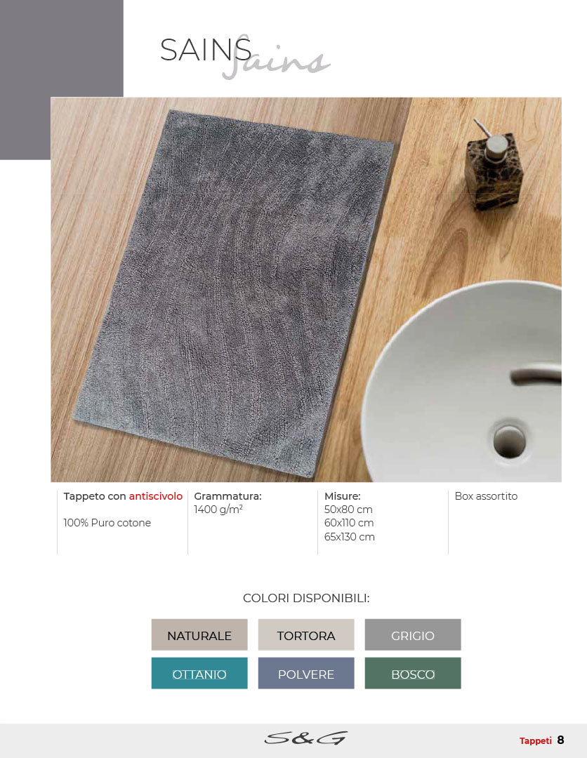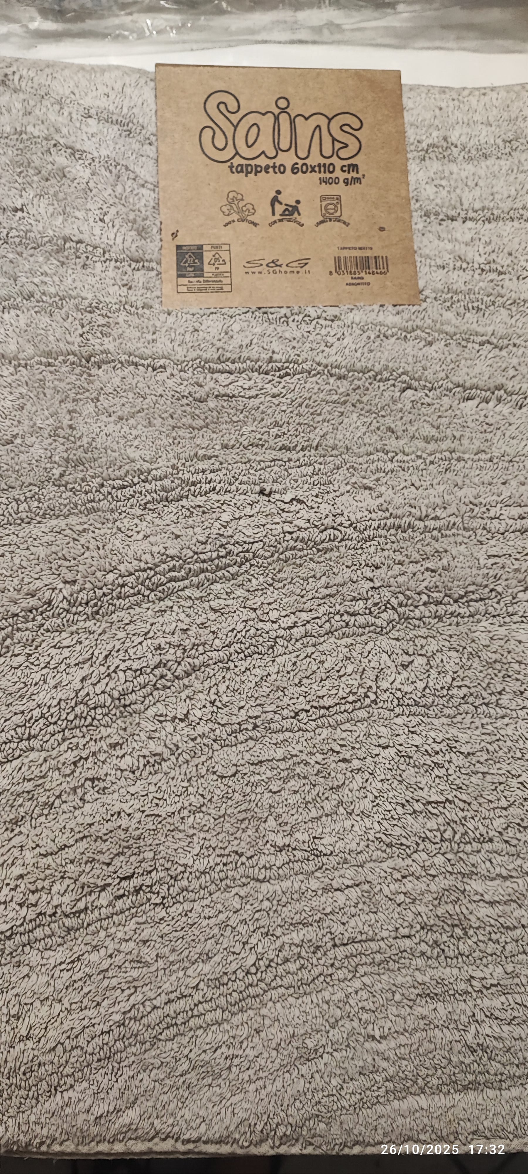 Tappeto puro cotone 100% con antiscivolo, grammatura 1400g/m2.