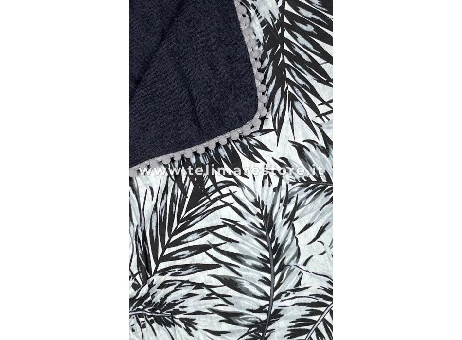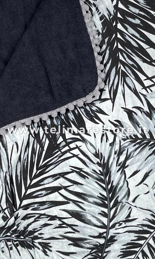 Telo Kikoy Copacabana Felci con Pon Pon, retro grigio antracite misura 90x170 cm, tessuto superiore 100% Cotone Stampato, Inferiore 100% Microspugna Poliestere, Asciugamano Mare - Telo Pareo Doppio.