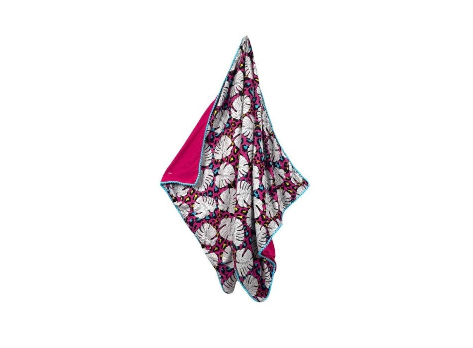 Telo Kikoy Copacabana Felci con Pon Pon, retro grigio antracite misura 90x170 cm, tessuto superiore 100% Cotone Stampato, Inferiore 100% Microspugna Poliestere, Asciugamano Mare - Telo Pareo Doppio.